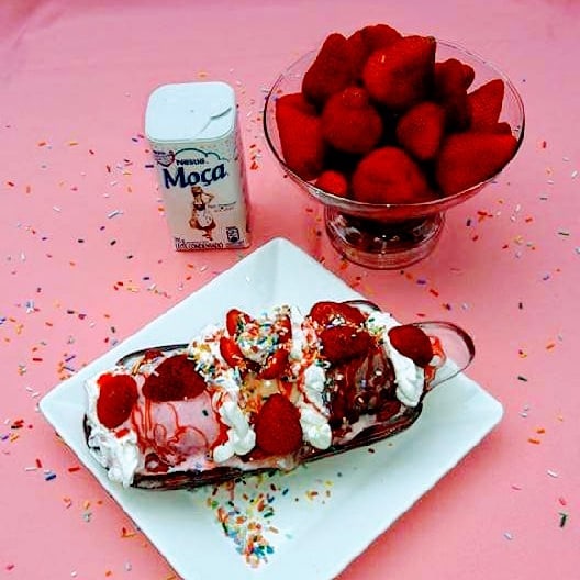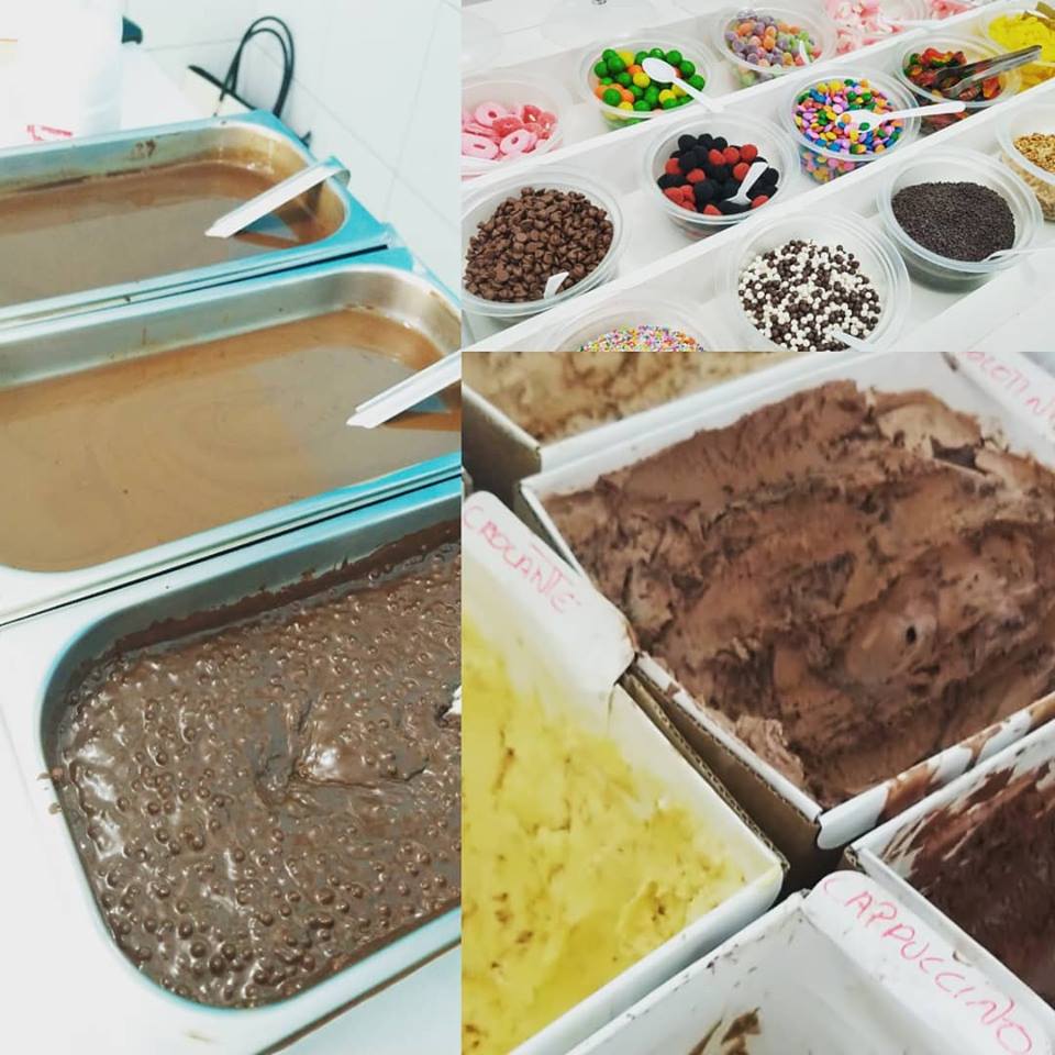 São 36 sabores de fabricação própria, doces e frutas em um ambiente limpo e agradável.