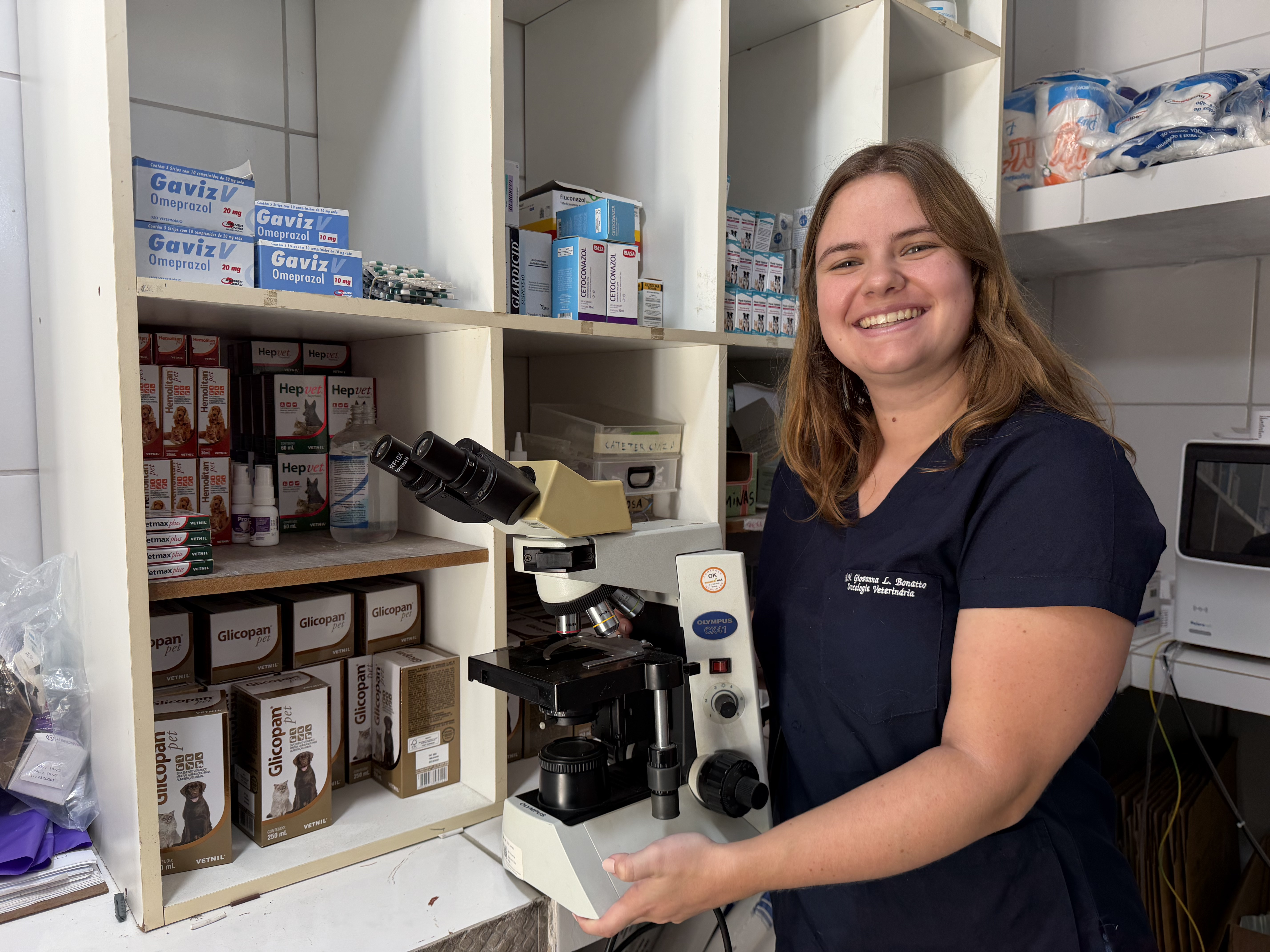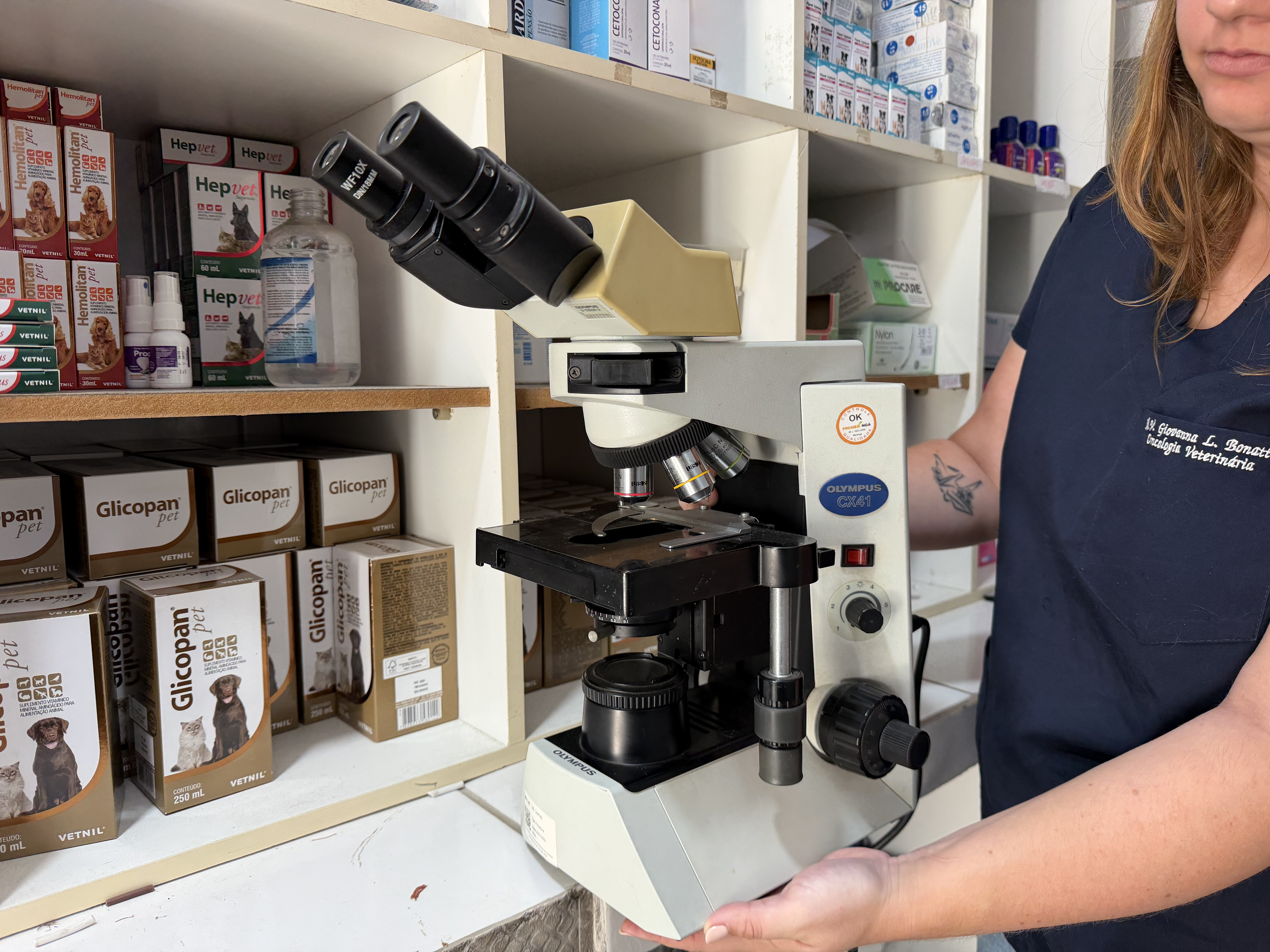 A estrutura também foi fortalecida com o apoio da Secretaria Municipal de Saúde, que disponibilizou um microscópio para análises complementares, como exames de esfregaço sanguíneo, citologia e avaliação de pele, tornando o diagnóstico ainda mais completo e ágil.
