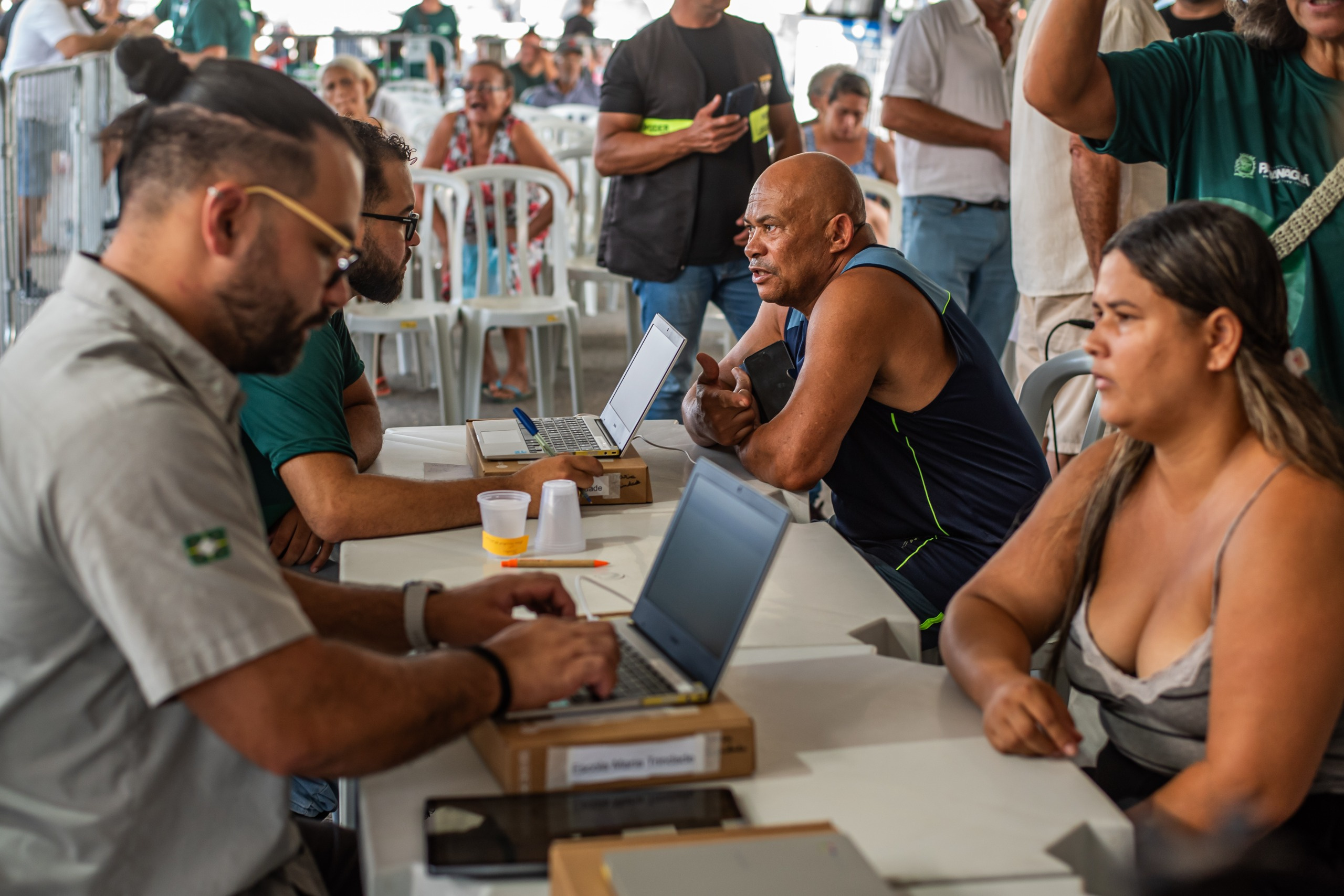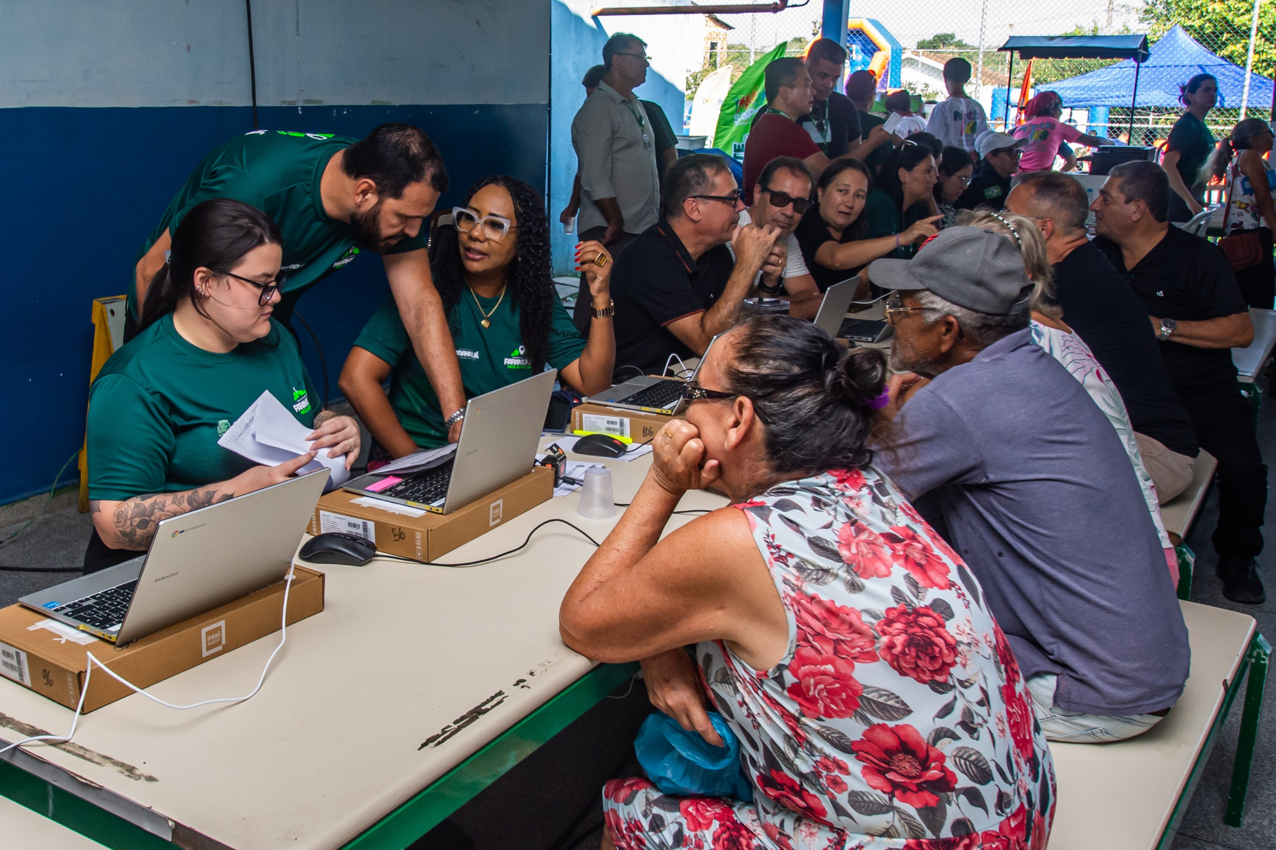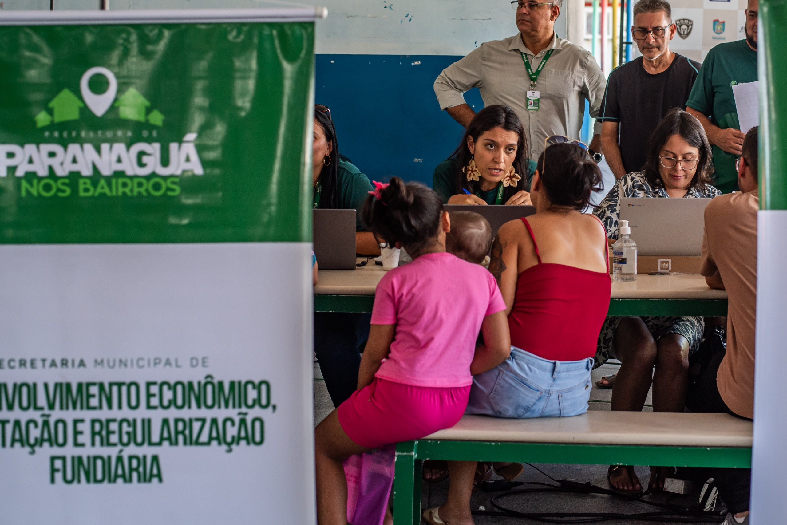 Entre os atendimentos oferecidos, a Secretaria Municipal de Desenvolvimento Econômico, Habitação e Regularização Fundiária realizou cadastros habitacionais e orientações sobre regularização de imóveis.