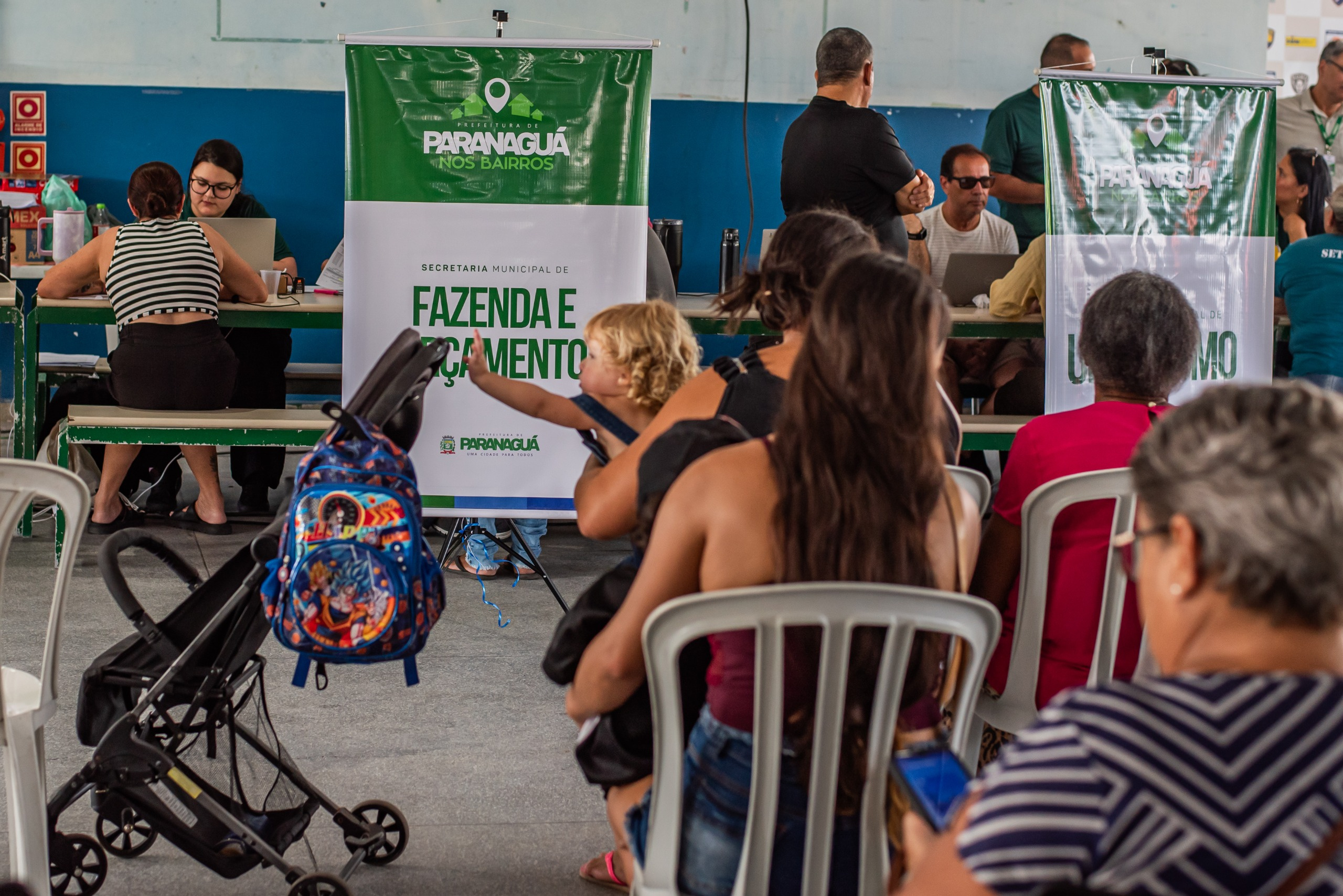 O prefeito Adriano Ramos, a vice-prefeita Fabiana Parro e secretários municipais, participaram neste sábado, dia 25, da primeira edição do programa Prefeitura nos Bairros, realizada na Escola Municipal Professor Joaquim Tramujas, no bairro Porto Seguro, em Paranaguá. A ação reuniu serviços de 20 secretarias e promoveu atendimento direto aos moradores, com o objetivo de ouvir demandas e encaminhar soluções e estar próximo da comunidade.