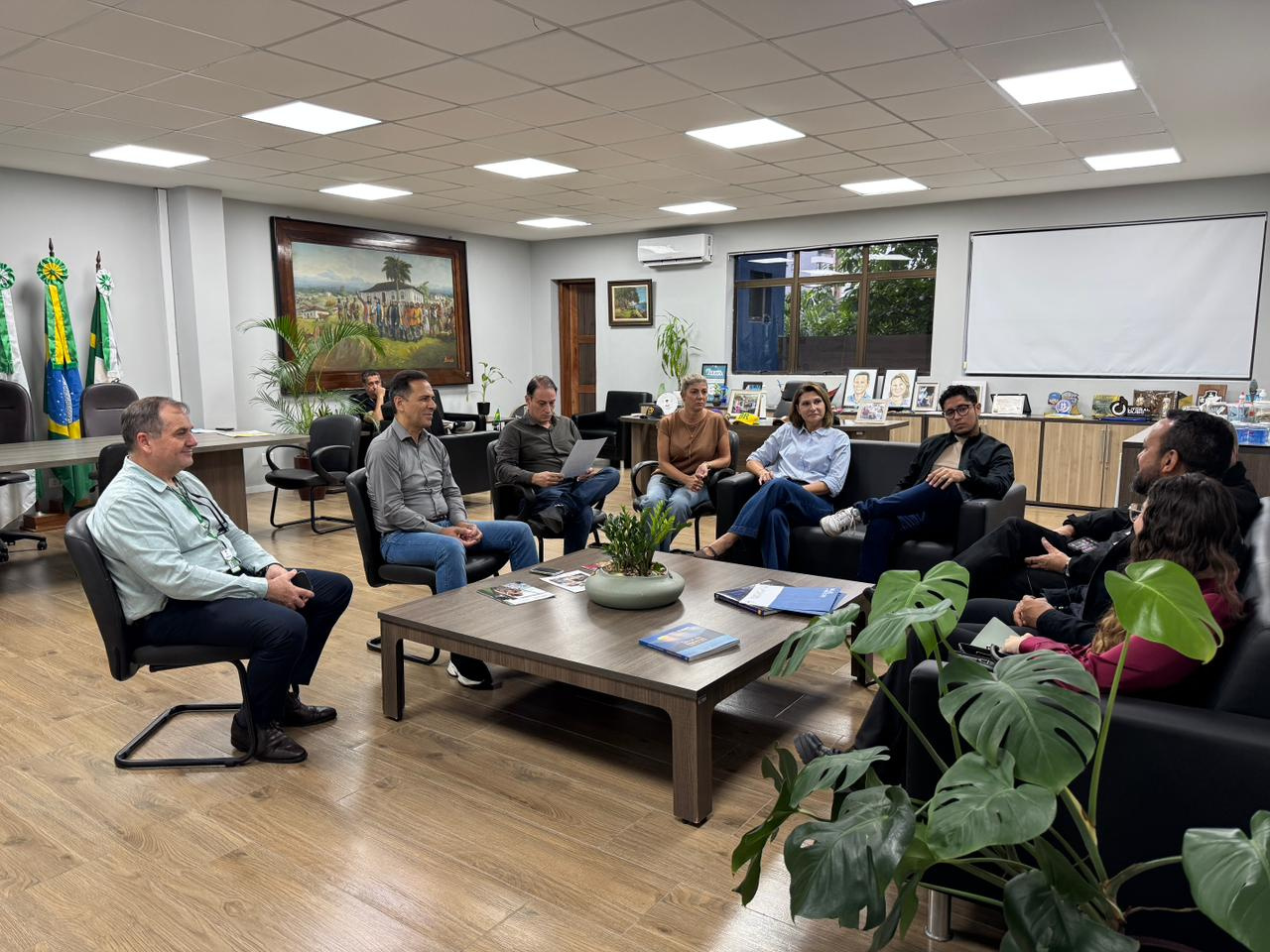 Também estiveram presentes na reunião o secretário de Cultura, José Reis de Freitas Neto (Juca), e o secretário de Administração, Calney Martins Gerhardt Pereira, reforçando a integração entre as áreas na condução das ações.