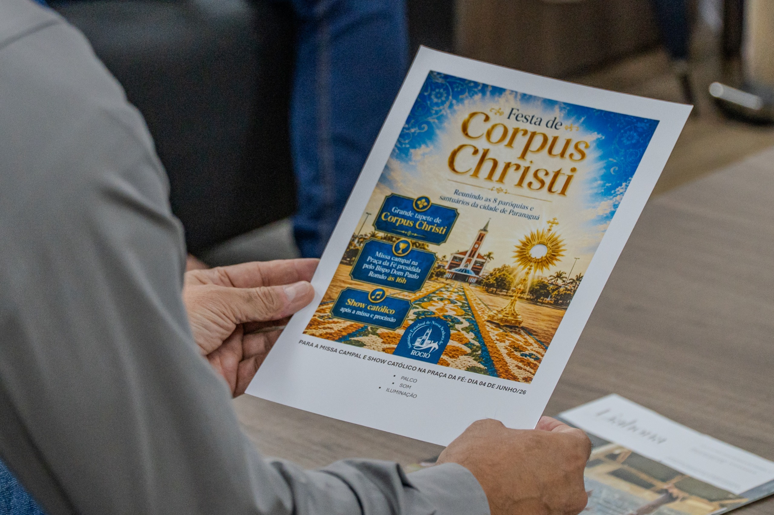 O gabinete do prefeito Adriano Ramos voltou-se, no fim da tarde, para um diálogo que ultrapassa o campo institucional e alcança a vida comunitária. A Prefeitura de Paranaguá recebeu representantes da Igreja Católica para tratar da organização da celebração de Corpus Christi, marcada para 4 de junho, no Santuário Estadual de Nossa Senhora do Rocio, um dos principais eventos religiosos do calendário local.