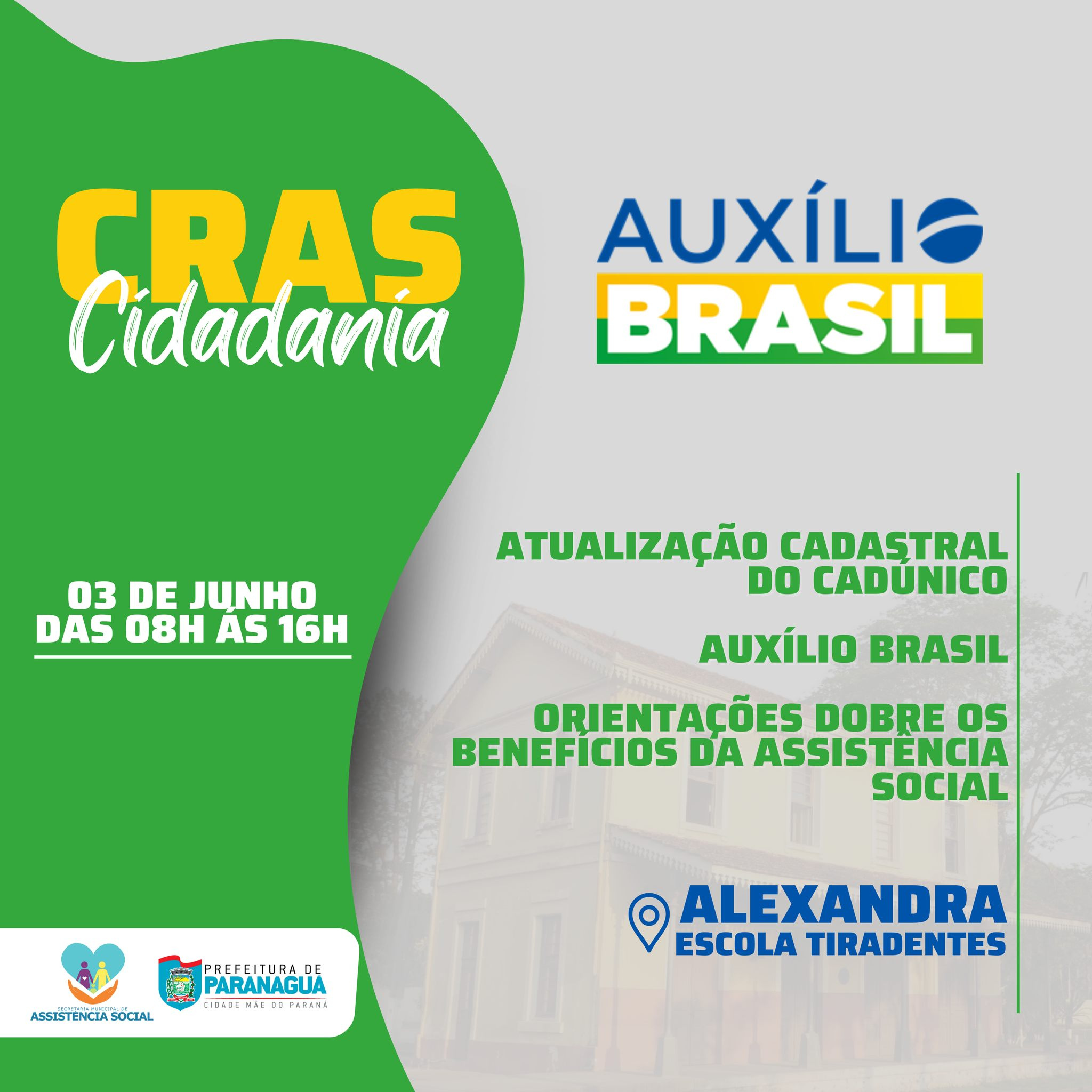 Nesta sexta-feira, 3, a Secretaria Municipal de Assistência Social (Semas) promove o CRAS Cidadania em Alexandra. Conforme a pasta, todos os moradores poderão participar da ação que ofertará vários serviços.