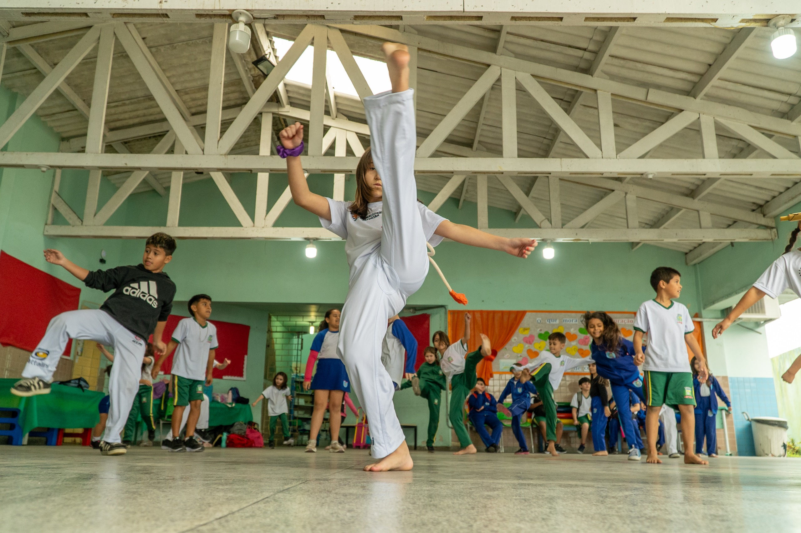 Na Escola Profª Eloína Loyola Vianna, no Bockmann, o mestre Luiz Paulo Matraca ensina capoeira para cerca de 80 alunos. “A capoeira é cultura, inclusão social e cidadania. Aqui, as crianças aprendem disciplina, autoestima e se conectam com a identidade local e a tradição brasileira”, acrescentou.