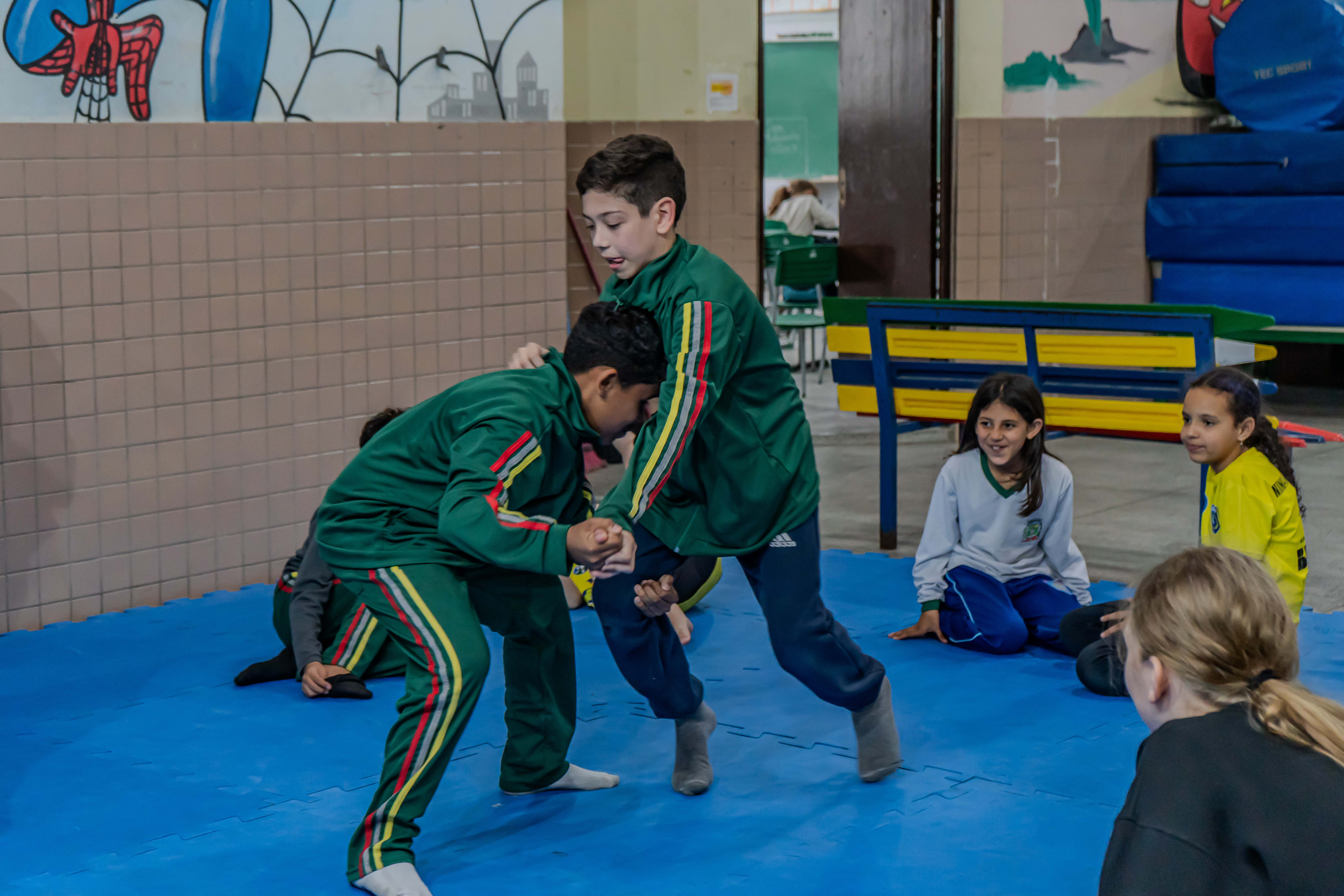 No contraturno da Escola Edinéa Marize Marques Garcia, no Jardim Samambaia, as atividades vão do handebol ao jiu-jitsu, com foco também na inclusão de crianças com deficiência. Para o professor Robert Figueira, o jiu-jitsu vai muito além da prática esportiva. “É uma das artes marciais que mais crescem no Brasil e, dentro da escola, contribui para a formação cidadã, ensinando disciplina, respeito e defesa pessoal. Também trabalhamos com alunos autistas e com deficiência, garantindo que todos tenham a oportunidade de participar”, disse.