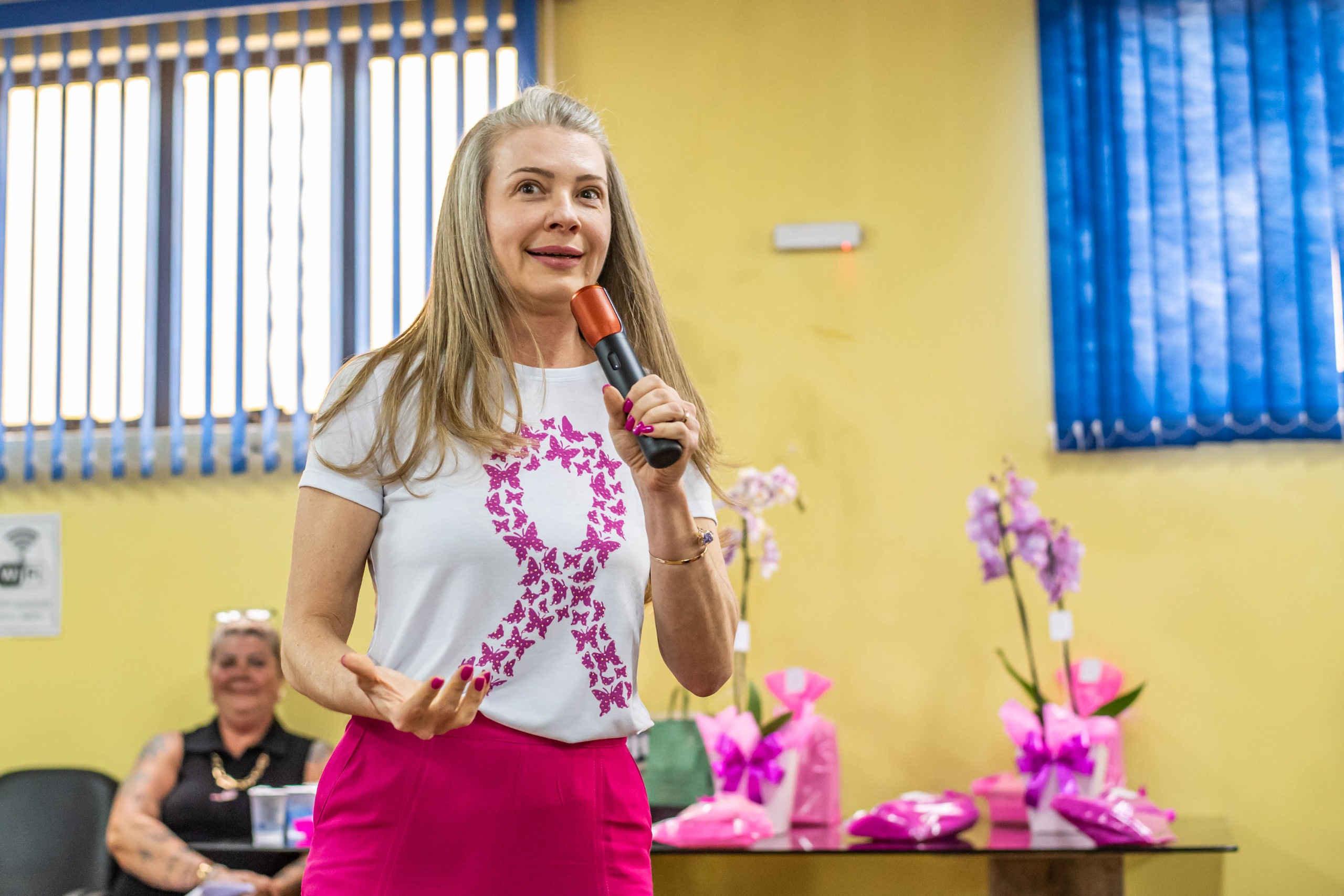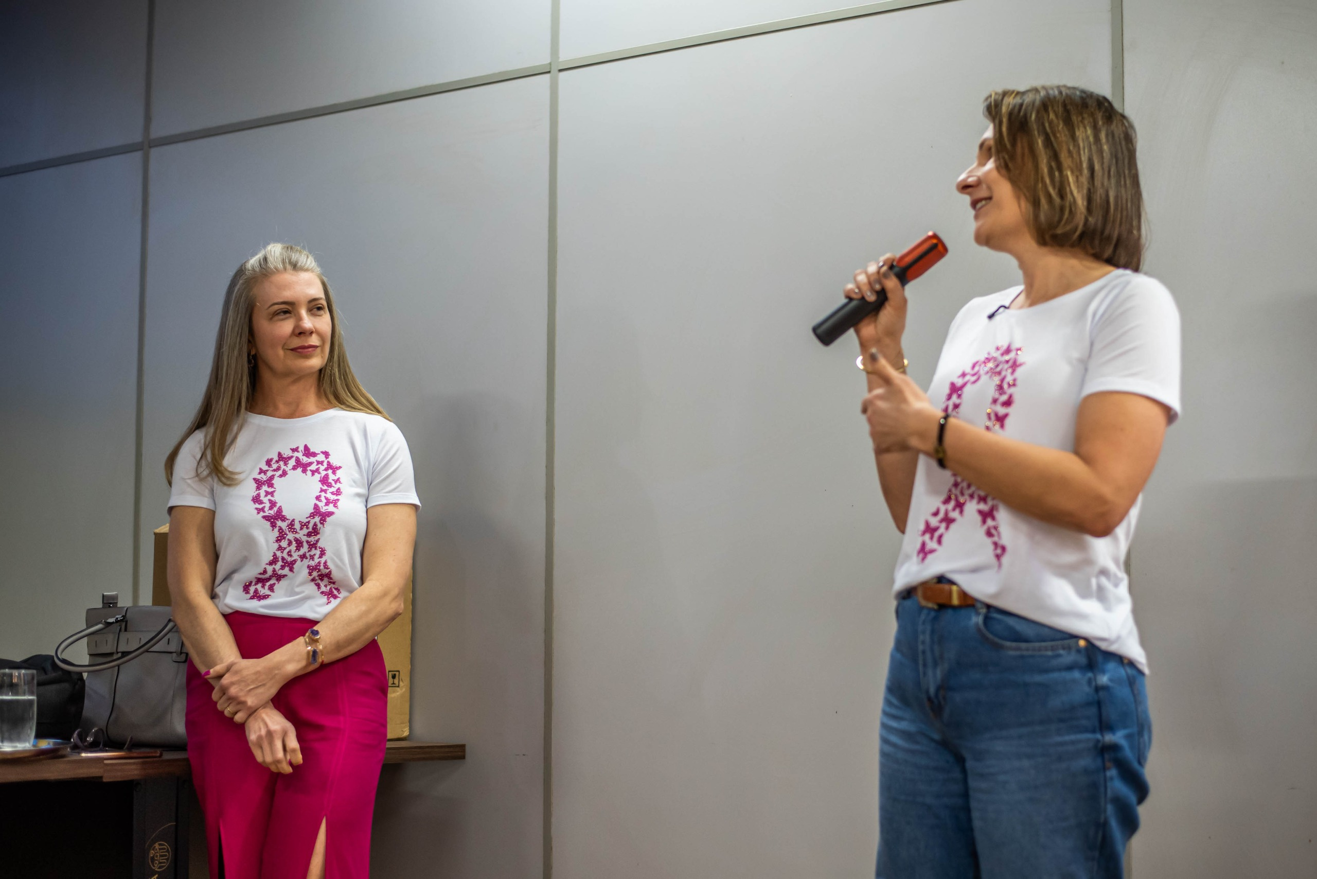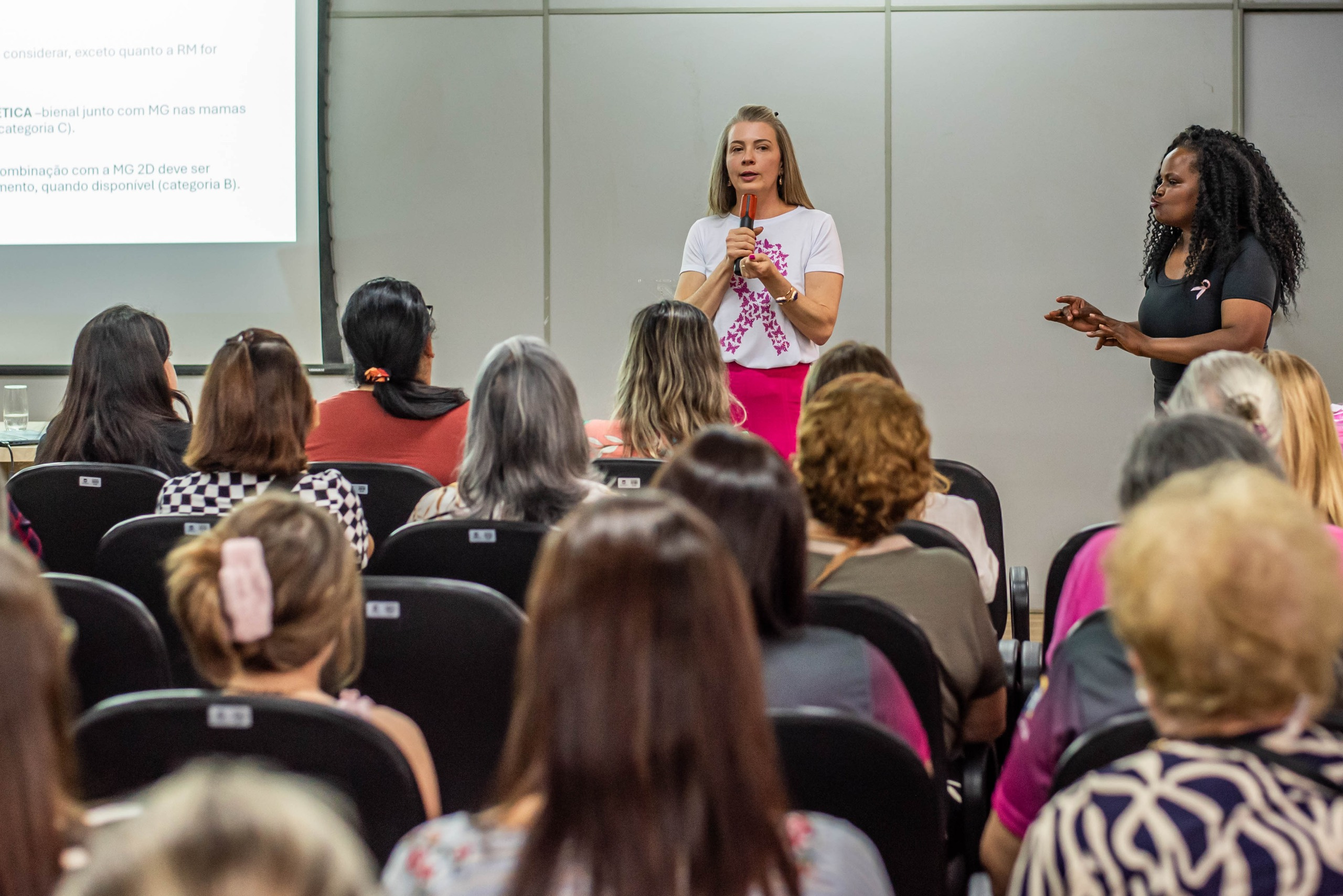 A médica Ana Leprevost, ginecologista e mastologista, foi direta ao ponto. “Se só lembrarmos da mama em outubro, todo o esforço perde sentido”. Ela explicou como escolhas diárias — como alimentação balanceada e exames regulares — são decisivas para a prevenção. “Nada é mais seu do que as consequências dos seus atos”, disse, ao desmistificar crenças sobre a doença. O lema da palestra “A saúde das suas mamas reflete a saúde do seu corpo” resumiu a mensagem principal.