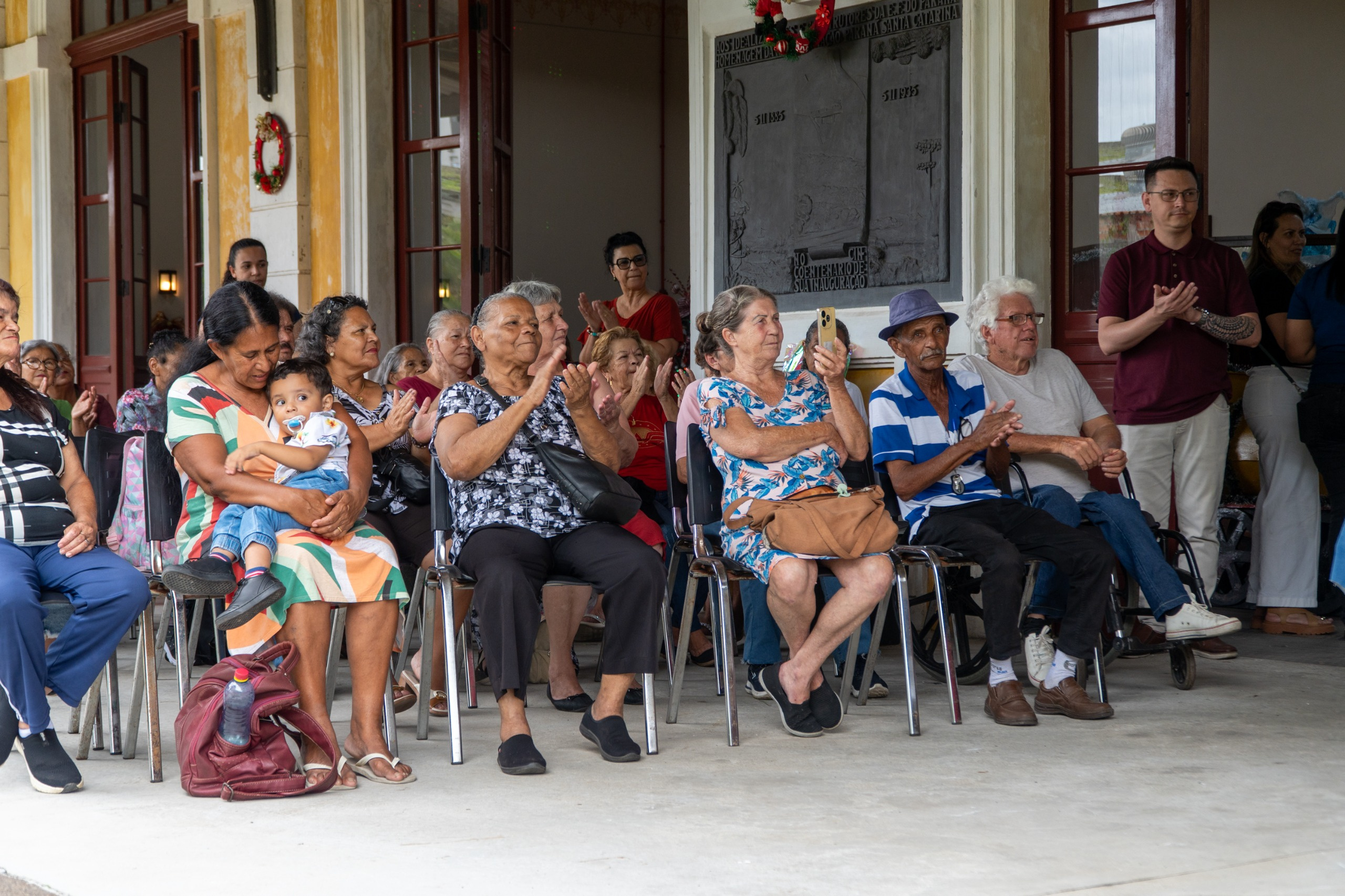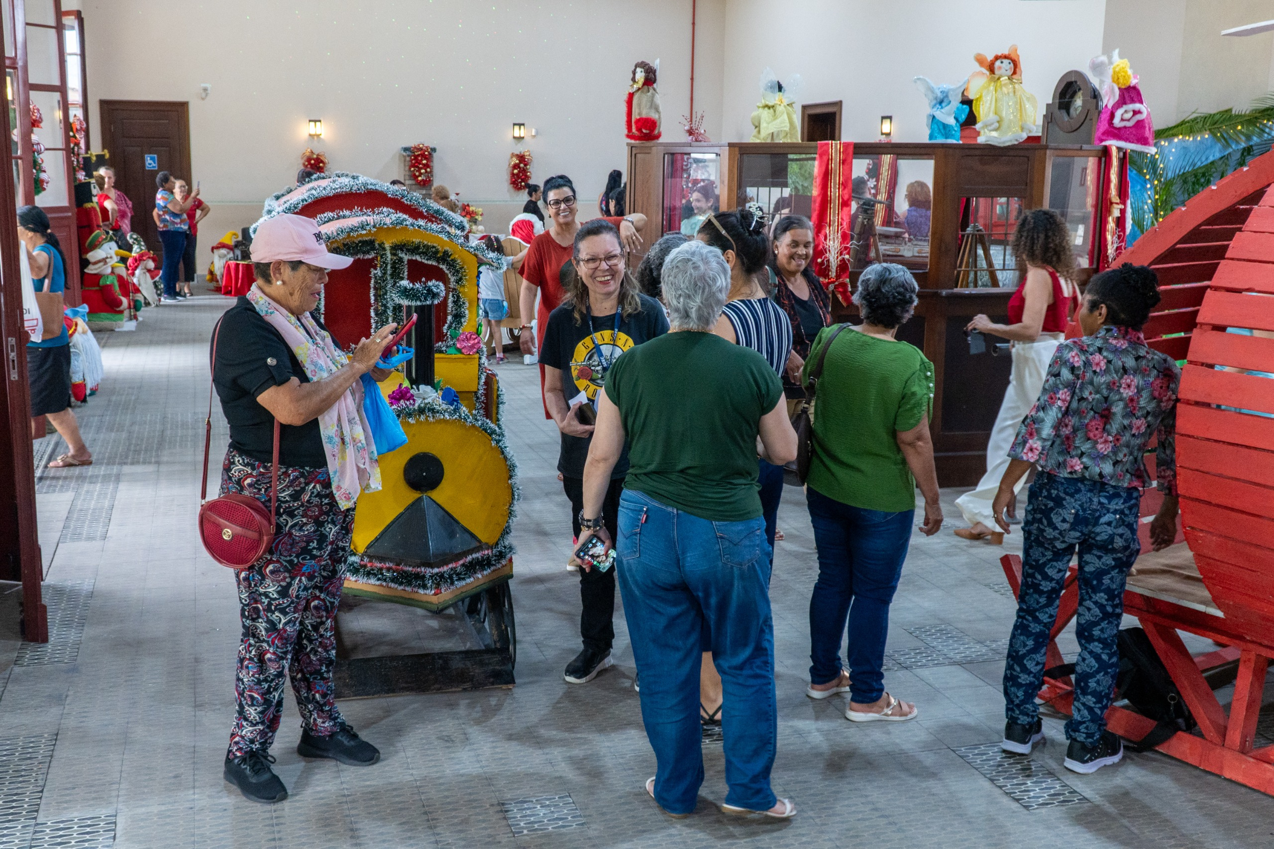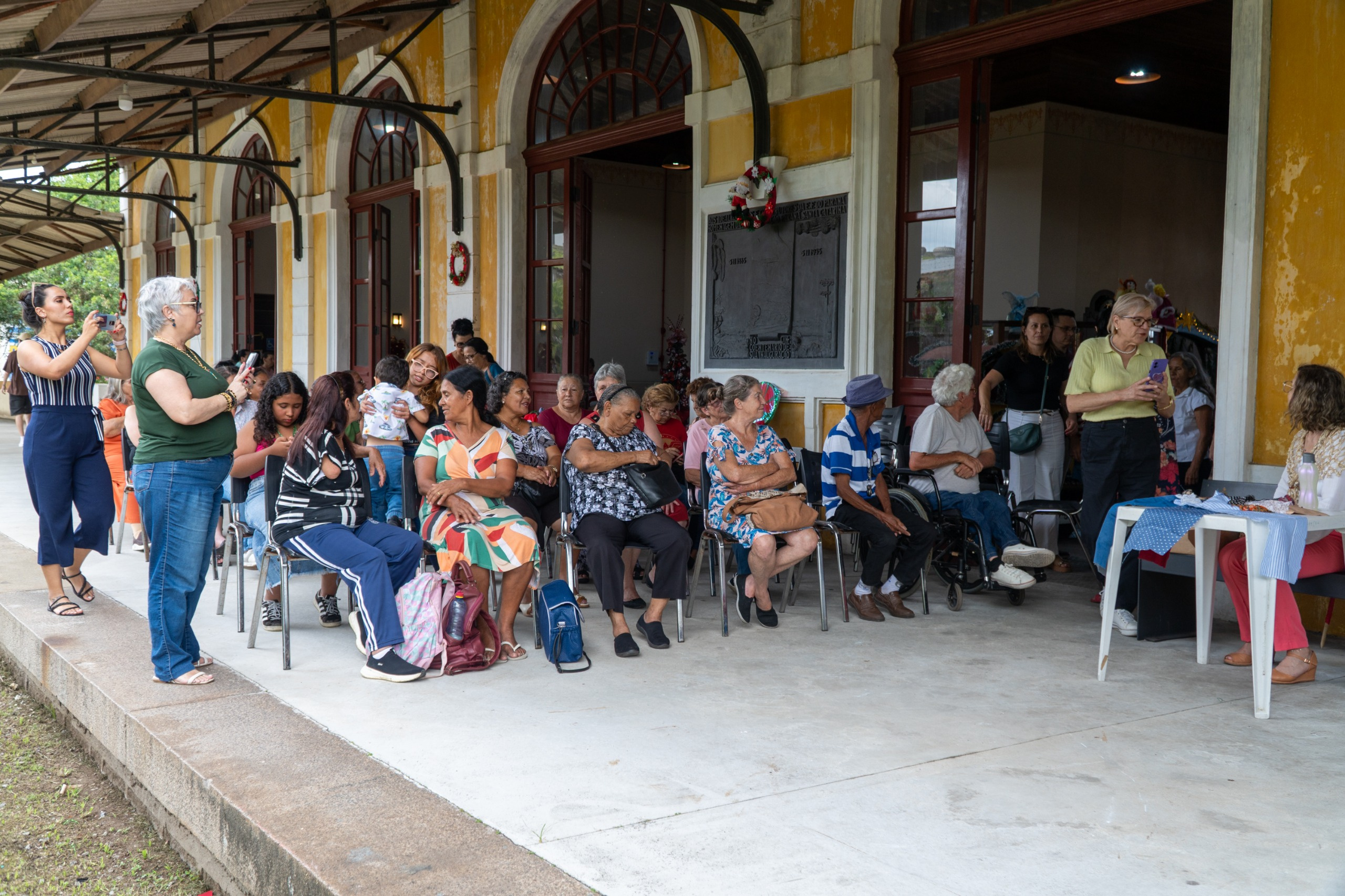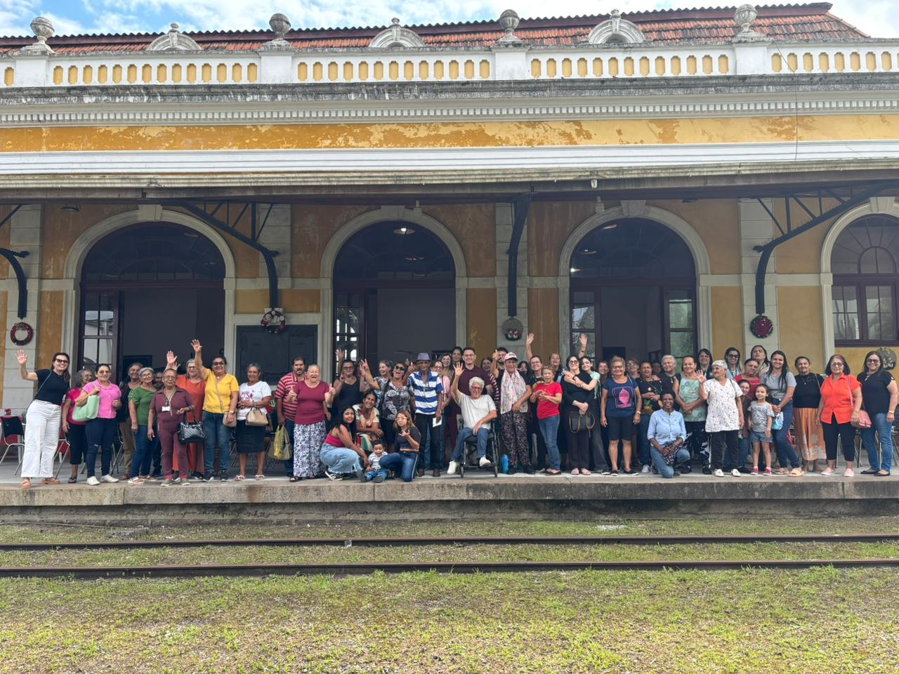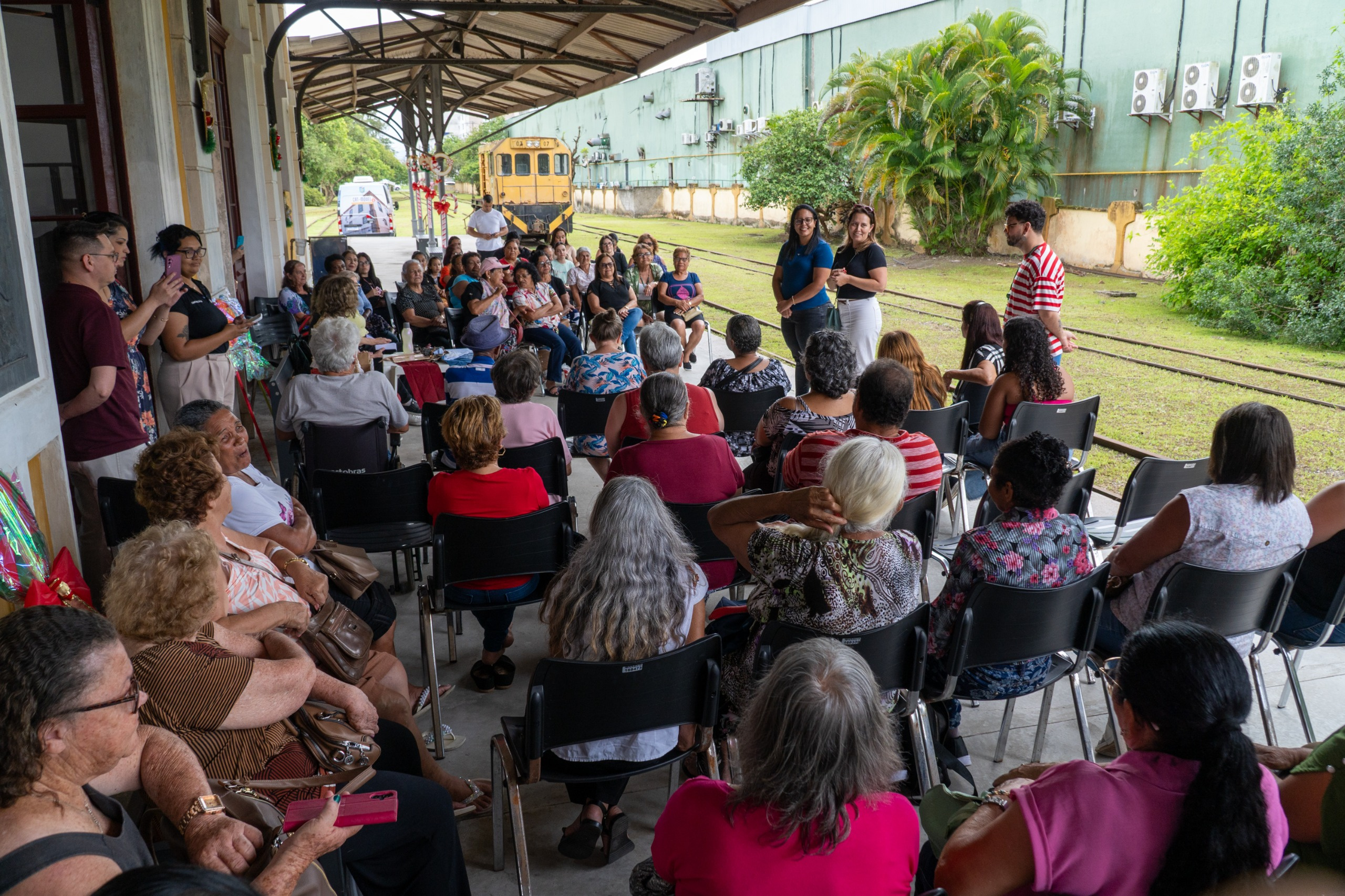 A Estação Ferroviária de Paranaguá recebeu, na tarde desta quinta-feira, dia 4, um encontro especial que reuniu cerca de 60 idosos atendidos pelo Serviço de Convivência e Fortalecimento de Vínculos (SCFV) dos seis Centros de Referência de Assistência Social (CRAS) do município. A iniciativa, organizada pela Secretaria Municipal da Mulher, Desenvolvimento Social e Igualdade Racial (Semdir), marcou o encerramento das atividades do ano e teve como objetivo fortalecer a convivência entre diferentes territórios, além de apresentar aos participantes, em primeira mão, a decoração natalina preparada para o espaço histórico.