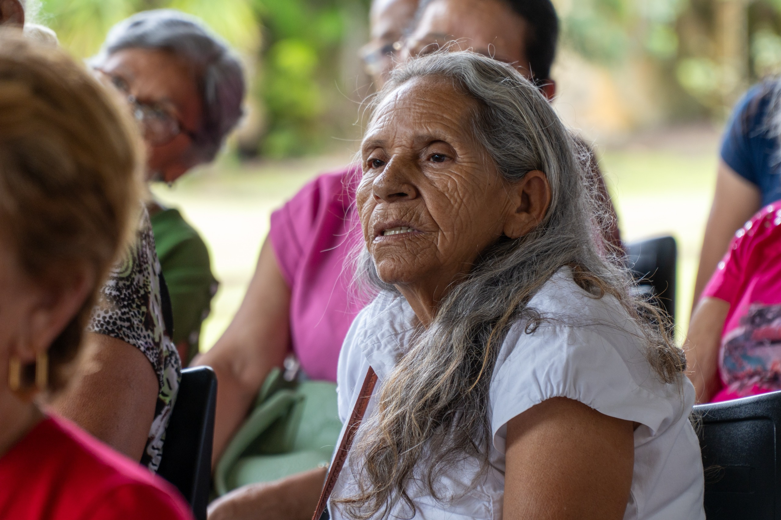 Entre os idosos que vieram de outras regiões da cidade, Angelita do Rocio Assunção Veiga Brandão, integrante do SCFV do CRAS Alexandra, destacou que o serviço tem sido uma rede de apoio importante em sua rotina. “É um lugar onde a gente tem apoio quando precisa: cesta básica, kit de verdura, documentos. As meninas de lá estão sempre à disposição. Também temos vários cursos — gostei muito de fazer o de vela, desinfetante, repelente. A gente conversa, desabafa, sai um pouco da rotina. E hoje estamos aqui conhecendo pessoas novas. É muito importante”, contou.