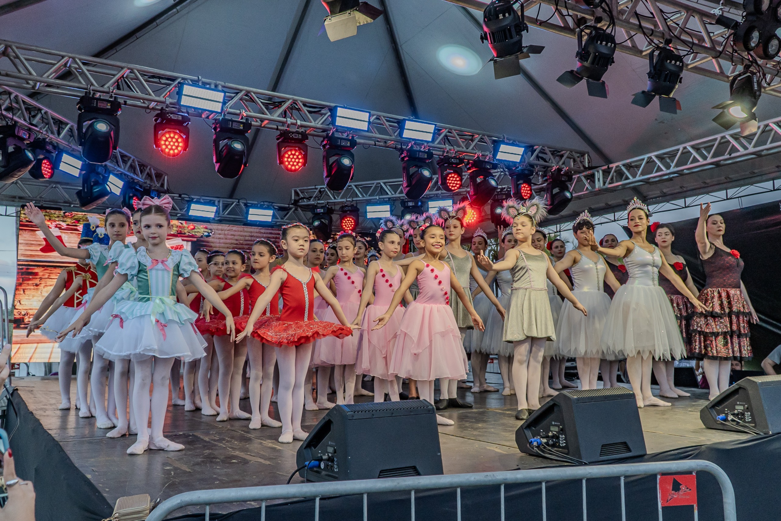 O Centro de Danças Bravo encantou a plateia com o balé A Quebra-Nozes, enquanto o Centro de Danças Jéssica Santos também levou talento, emoção e magia ao palco. A programação contou ainda com a apresentação da Banda Ritalina, formada por jovens músicos que animaram o público com muito rock.