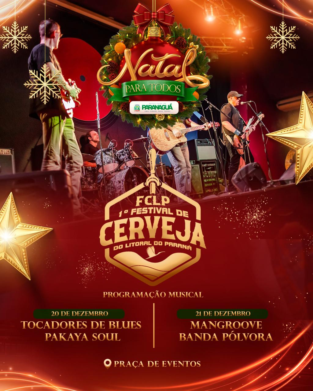 Nesta sexta-feira (19) começa o Festival da Cerveja do Litoral, em Paranaguá. O evento acontece na Praça de Eventos, no Centro Histórico, o mesmo espaço que recebe o Natal para Todos. Além das cervejarias artesanais, o público poderá curtir shows ao vivo e uma completa praça de alimentação. Confira as atrações musicais do final de semana: