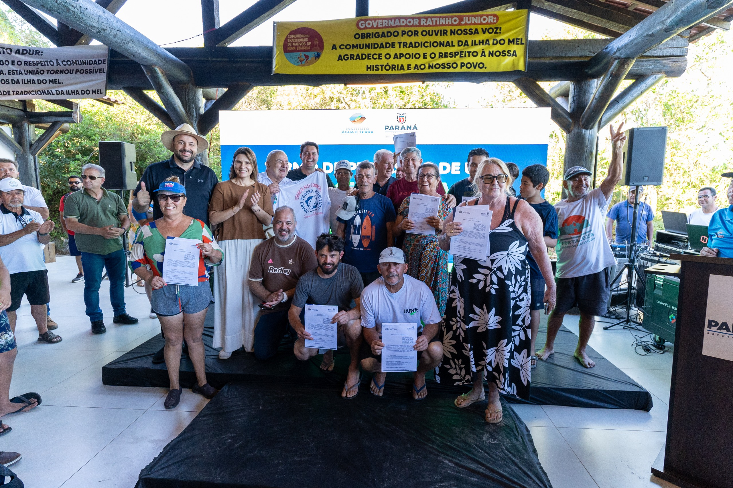 Outro anúncio de grande relevância social foi a assinatura do documento que garante autorização de uso sustentável para 23 famílias da Associação dos Nativos e Pescadores da Ponta Oeste (ANAPPOIM). O reconhecimento foi possível após a sanção da Lei Estadual nº 22.315/2025, que define a Estação Ecológica da Ilha do Mel como área especial de interesse ambiental e turístico.