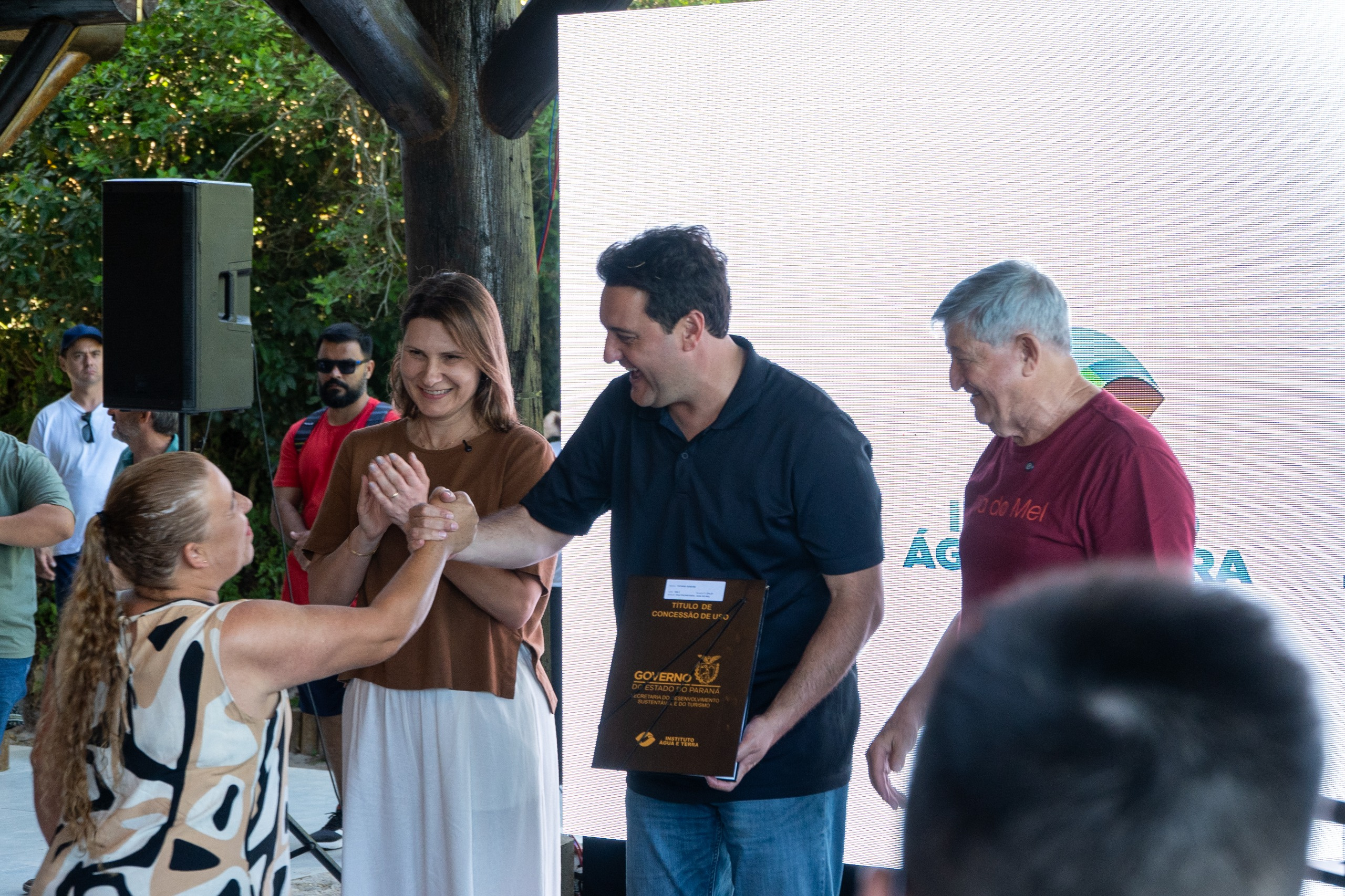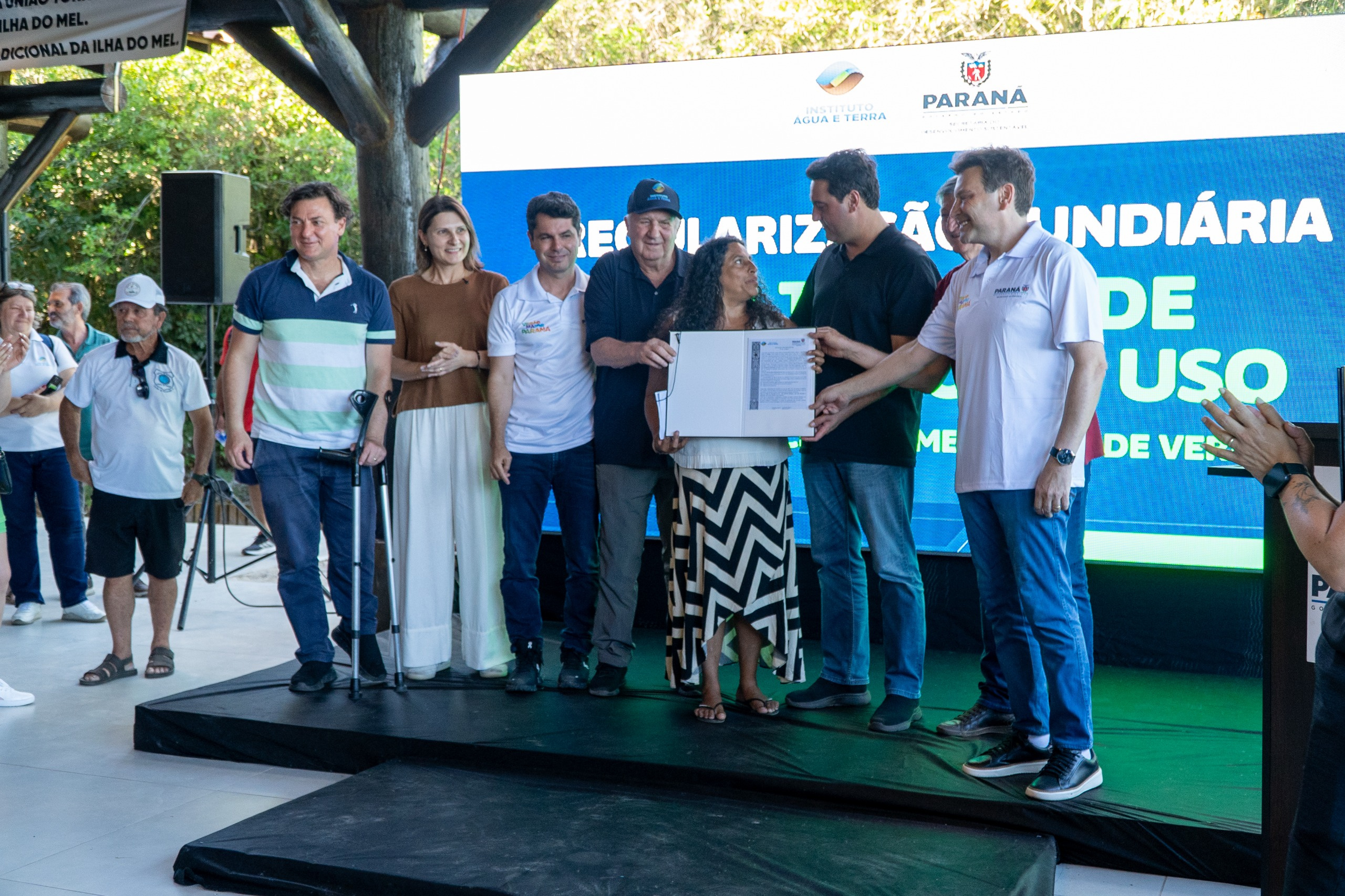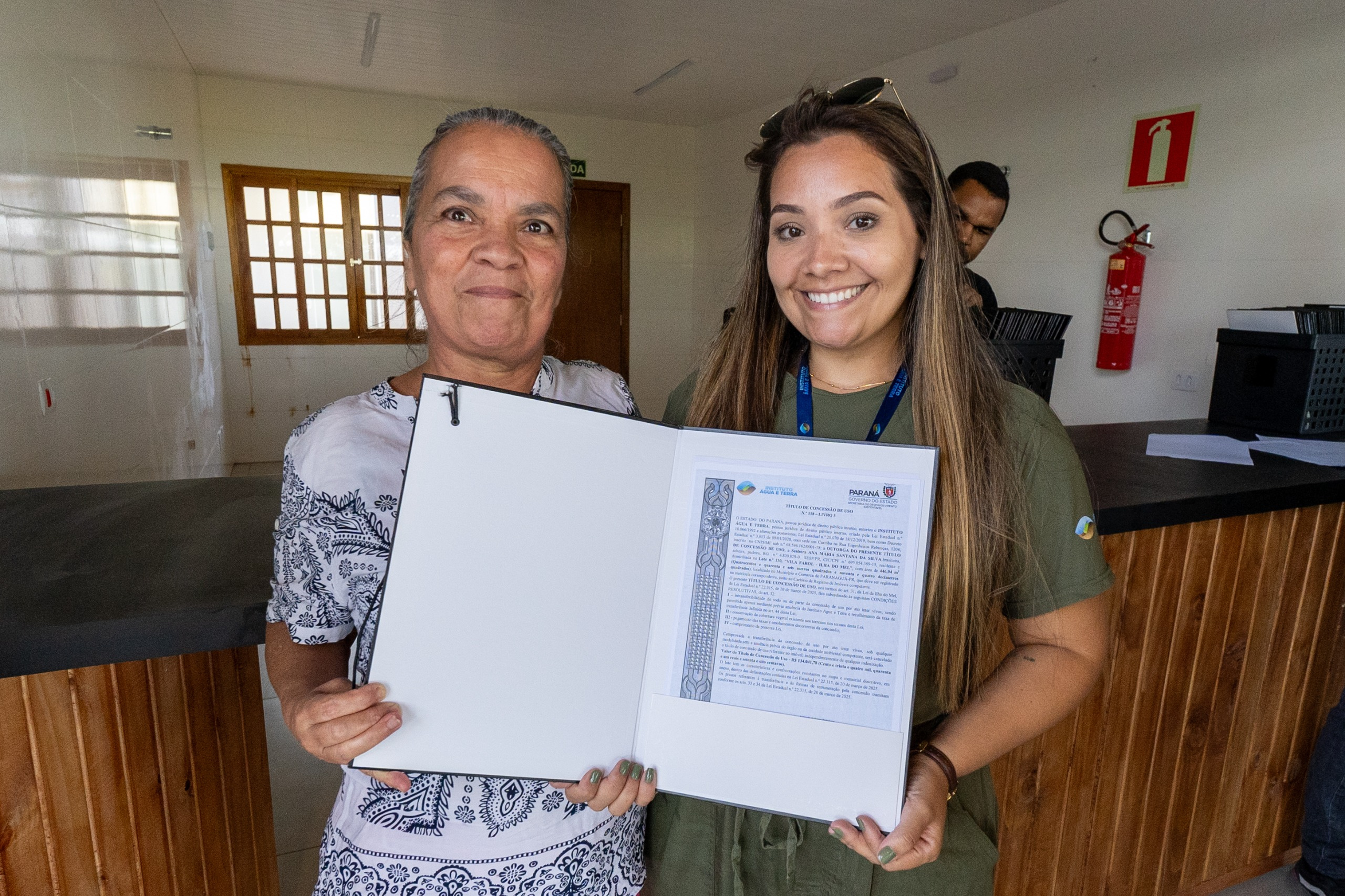 Moradora da Ilha do Mel desde o nascimento, Ivonete Serafim Santana, de 68 anos, recebeu o título de concessão após décadas vivendo sem documentação. “É tudo o que a gente precisava. A gente sempre viveu com medo, sem segurança. Agora não. Agora é nosso de verdade. Fica tudo mais tranquilo para nós, para nossos filhos e netos. É uma maravilha daqui para frente”, afirmou emocionada.