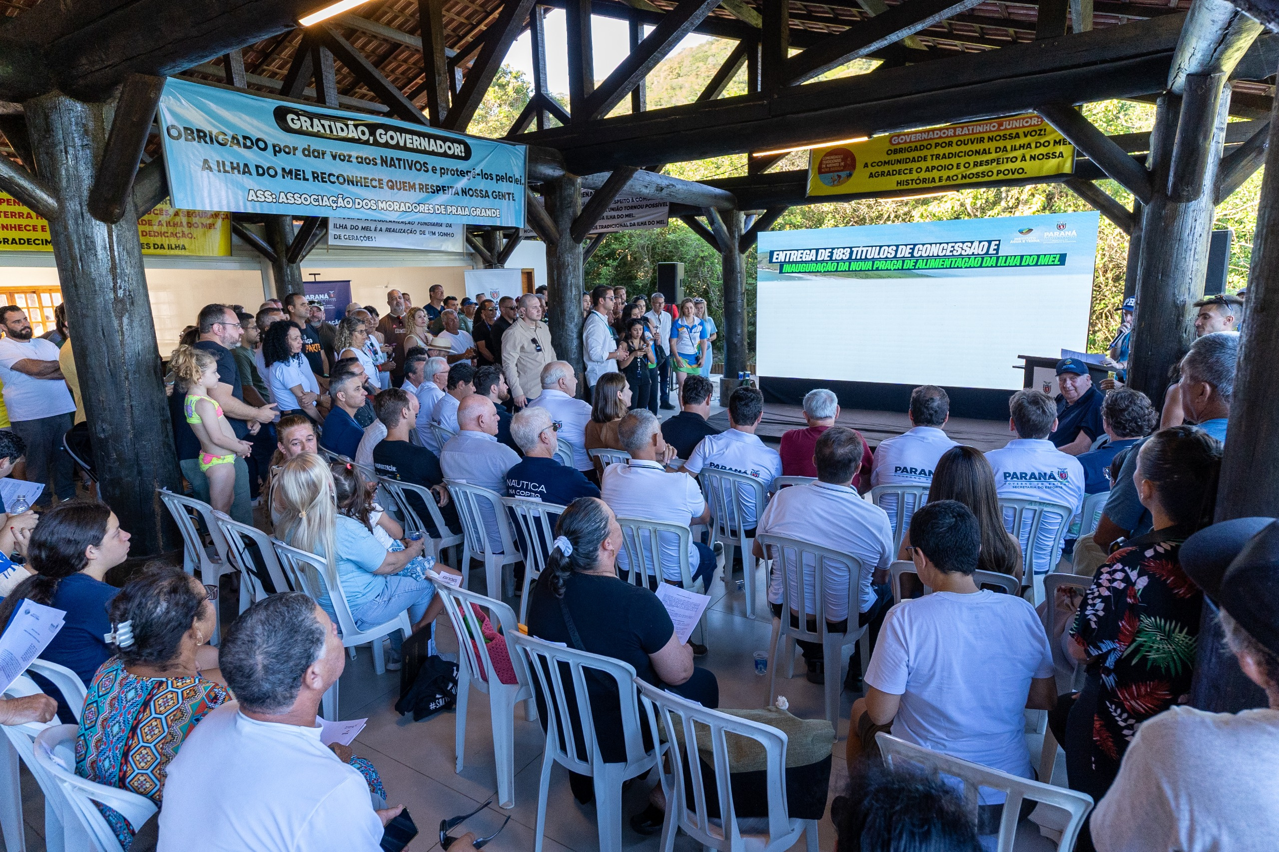 A Ilha do Mel viveu, na sexta-feira, dia 19, um dia considerado histórico para seus moradores e comunidades tradicionais. O governador Carlos Massa Ratinho Junior esteve na ilha para anunciar e entregar um conjunto de ações que envolve regularização fundiária, autorização de uso sustentável para a comunidade tradicional de Ponta Oeste e a inauguração de importantes obras de infraestrutura em Encantadas e Nova Brasília.