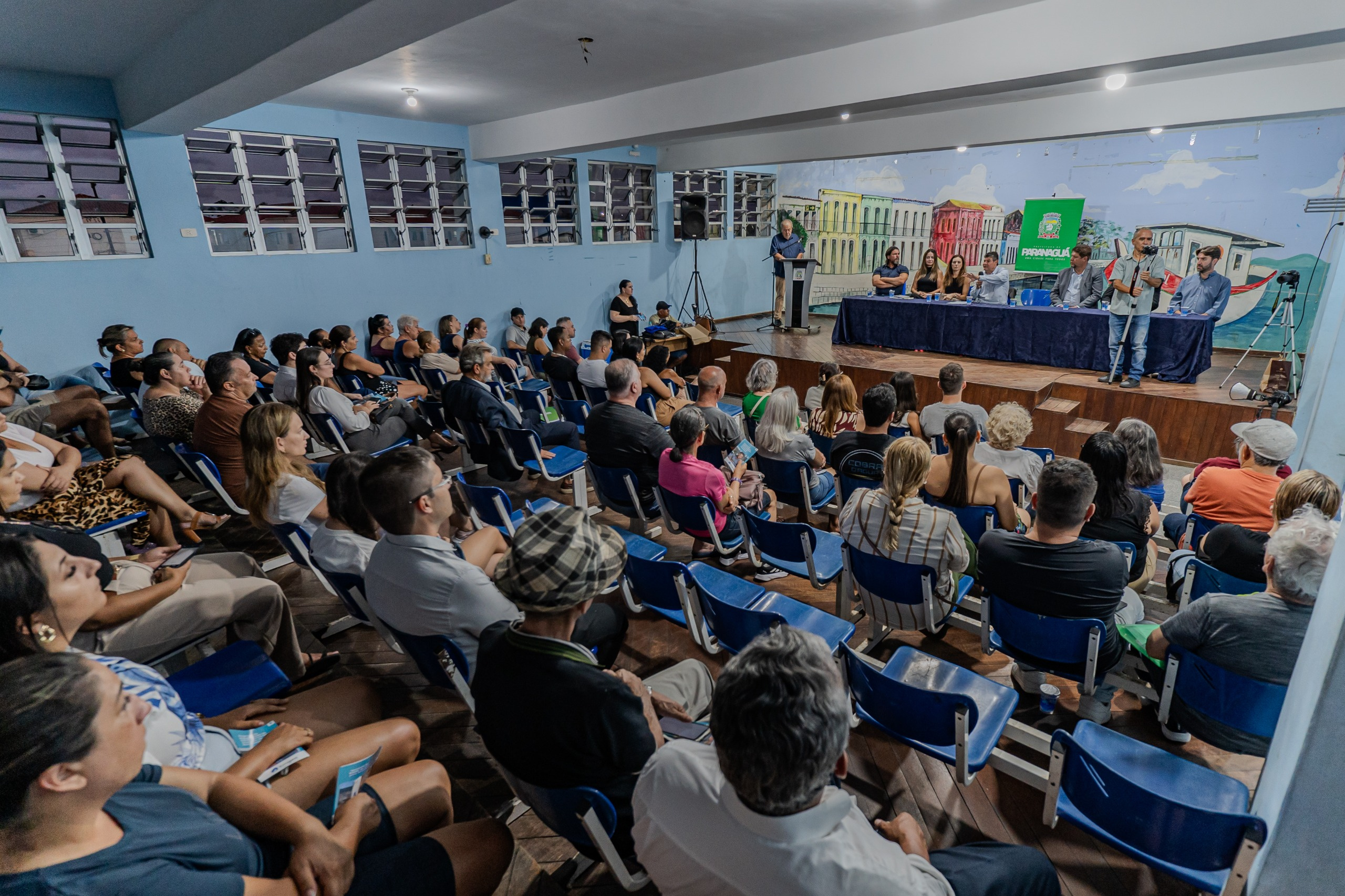 O prefeito de Paranaguá, Adriano Ramos, participou na noite de segunda-feira, dia 26, de uma audiência pública realizada na Escola Municipal em Tempo Integral Dr. Aníbal Ribeiro Filho, no Parque Agari. Durante o encontro, foi apresentado um programa de regularização fundiária que beneficiará moradores do Conjunto Residencial Ouro Verde e do Conjunto Residencial Ilha do Sol, localizados na Vila Paranaguá.