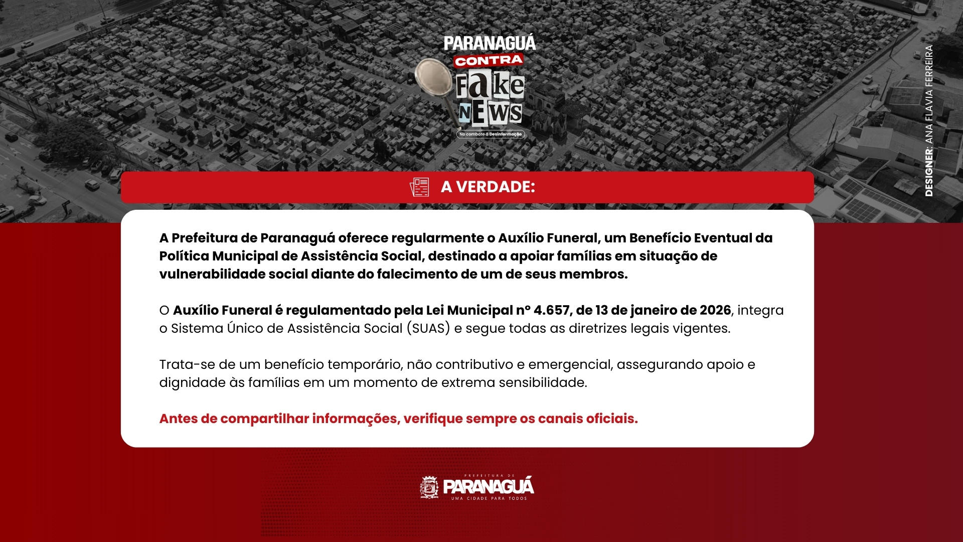 A Prefeitura de Paranaguá reafirma seu compromisso com a proteção social, o cuidado com as famílias e a garantia de apoio e dignidade em momentos de perda.