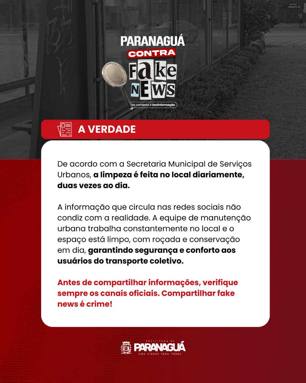 A administração municipal reforça a importância de a população buscar informações verdadeiras em canais oficiais antes de compartilhar conteúdos não verificados. Segundo a Prefeitura de Paranaguá, a disseminação de informações falsas gera desinformação, boatos, confunde a população e pode causar prejuízos à compreensão das ações públicas.
