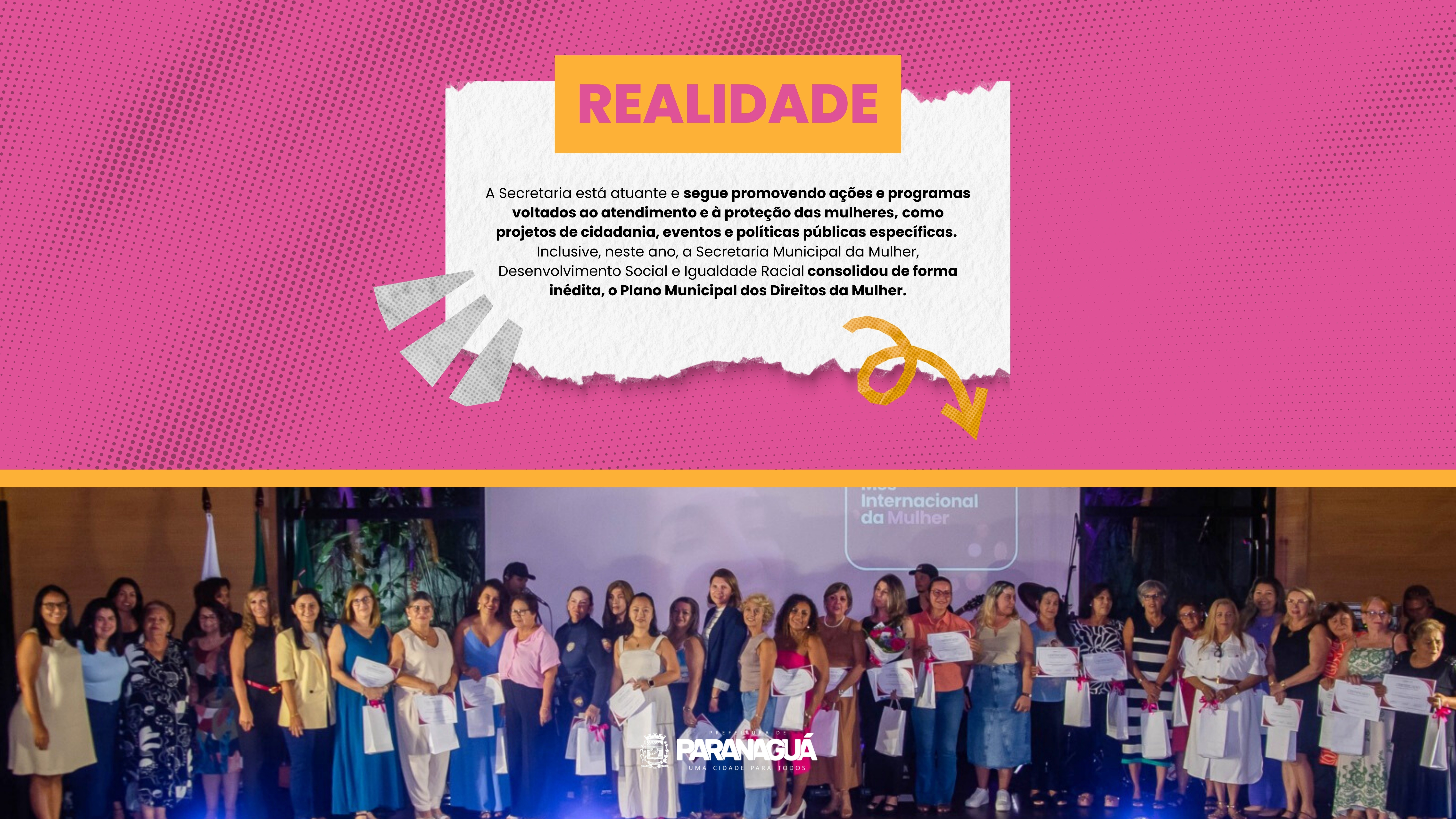A Secretaria está atuante e segue promovendo ações e programas voltados ao atendimento e à proteção das mulheres, como projetos de cidadania, eventos e políticas públicas específicas. Inclusive, neste ano, a Secretaria Municipal da Mulher, Desenvolvimento Social e Igualdade Racial consolidou de forma inédita, o Plano Municipal dos Direitos da Mulher.