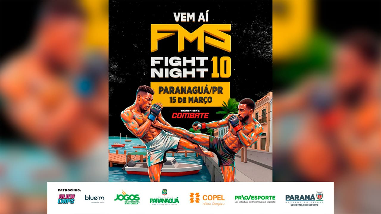 O FMS Fight Night 10 – Paranaguá 2026 é realizado pela organização do evento em parceria com o Governo do Estado do Paraná, por meio da Secretaria de Estado do Esporte, dentro da programação dos Jogos de Aventura e Natureza. A iniciativa conta ainda com apoio da Lei de Incentivo ao Esporte (Proesporte), Copel e da Prefeitura de Paranaguá.