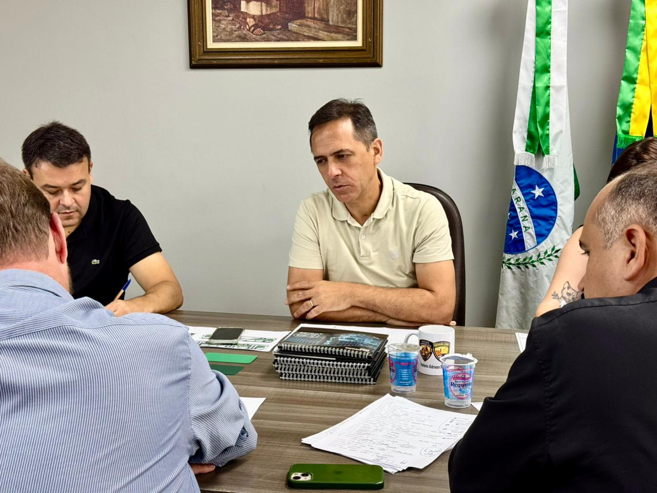 Na manhã desta sexta-feira, dia 20, o prefeito Adriano Ramos se reuniu com representantes da empresa Caio, de Botucatu, responsável pelo encarroçamento dos 40 novos ônibus que irão integrar o transporte coletivo de Paranaguá. O encontro também contou com a presença de representantes da Viação Rocio, concessionária do serviço no município, do engenheiro mecânico Eduardo Tows, do Grupo Sorriso, do secretário de Governo, Thiago Campos, da secretária de Fiscalização das Concessões e Contratos, Isabele Figueira Campos, e da designer responsável pelo projeto, Ana Flávia Ferreira.