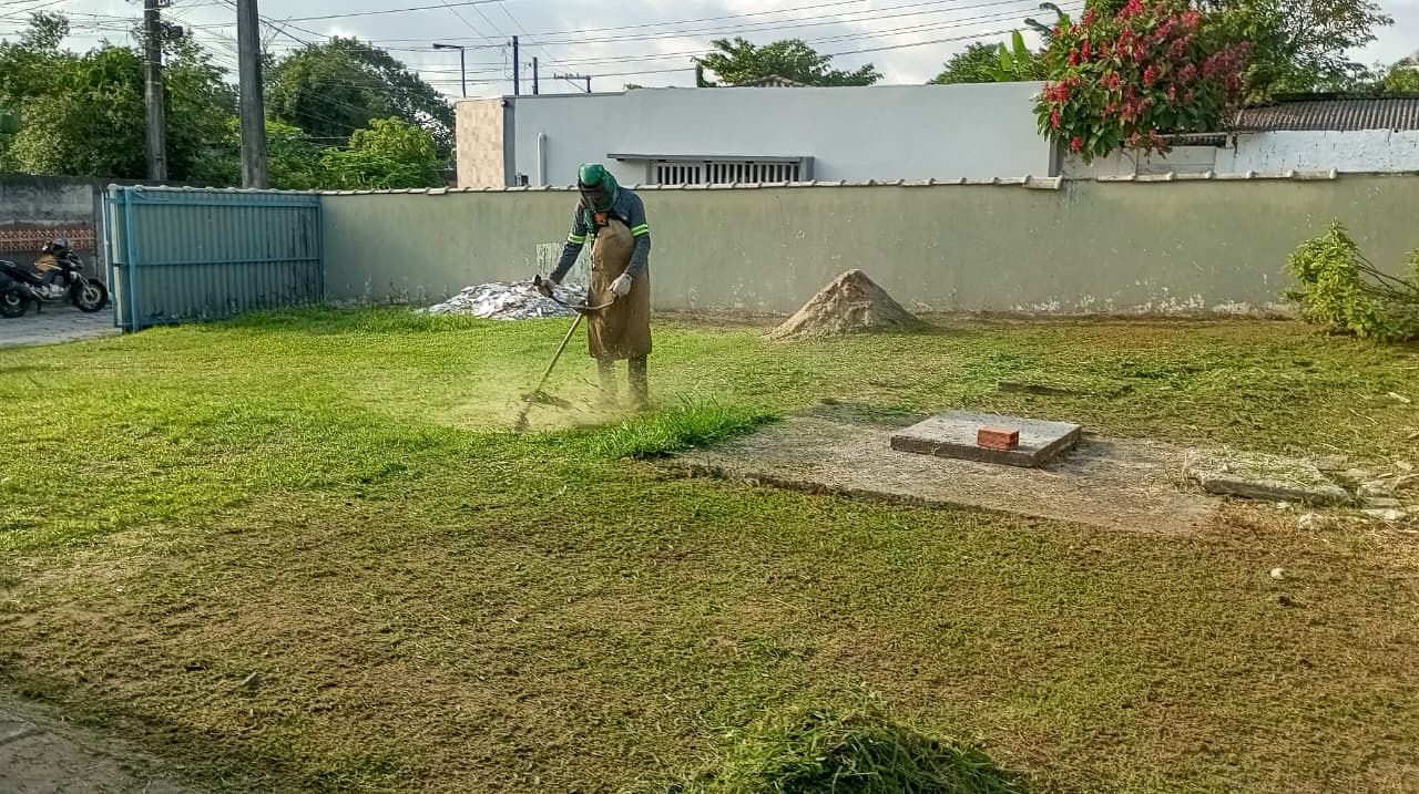 Os serviços de roçada também continuam sendo realizados, com ações em Centros Municipais de Educação Infantil (CMEIs) e na Unidade Básica de Saúde Norberto Costa, no bairro Sete de Setembro. Além disso, a limpeza da Praça Cyro Abalém está sendo executada diariamente.