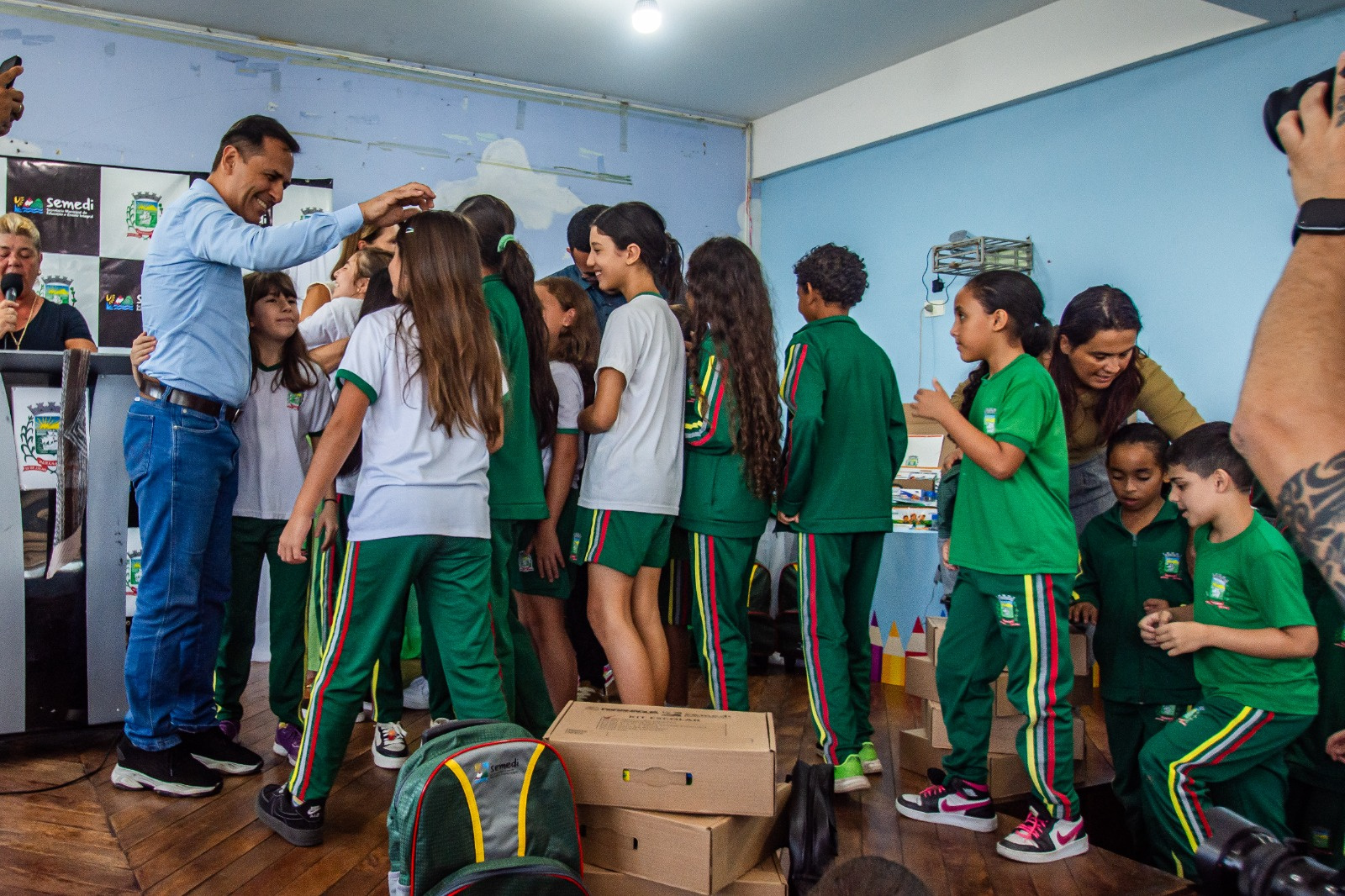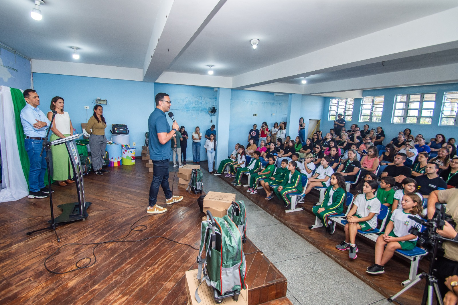 “É um momento de muita felicidade. Já havíamos atendido escolas integrais e agora conseguimos contemplar toda a rede municipal com kits, mochilas, uniformes e equipamentos para professores e demais profissionais da educação”, disse.