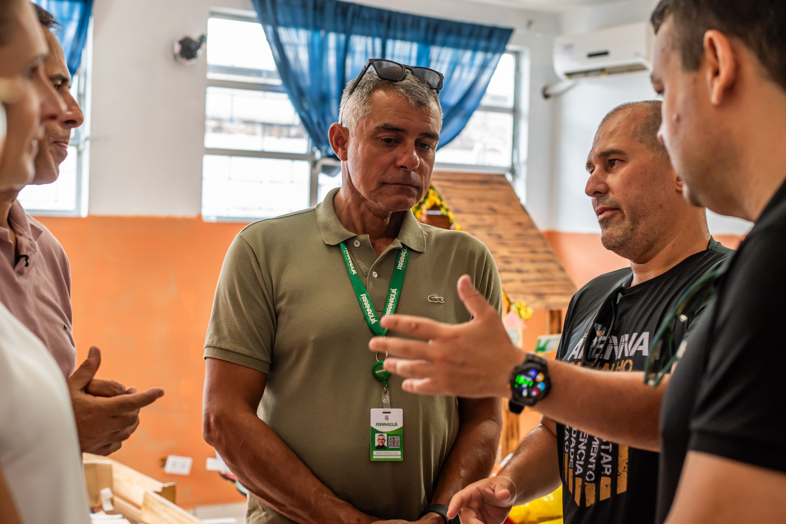No final da manhã deste sábado 25, o prefeito de Paranaguá, Adriano Ramos, esteve no CMEI Professora Nádia Iara Pereira da Cunha, localizado na Rua Seis, na Vila Itiberê, Ilha dos Valadares, para verificar de perto as necessidades de reforma da unidade. A visita incluiu reunião com a diretora Tatiane F. de Souza Pavesi e contou com a presença do secretário de Governo, Thiago Campos, secretário de Desenvolvimento Rural e Ilhas, Pesca, Abastecimento e Aquicultura, Marcio Vega, secretário Regional da Ilha dos Valadares, Leandro Ribeiro de Oliveira e da secretária de Fiscalização das Concessões e Contratos, Isabele Gonçalves Figueira Campos.